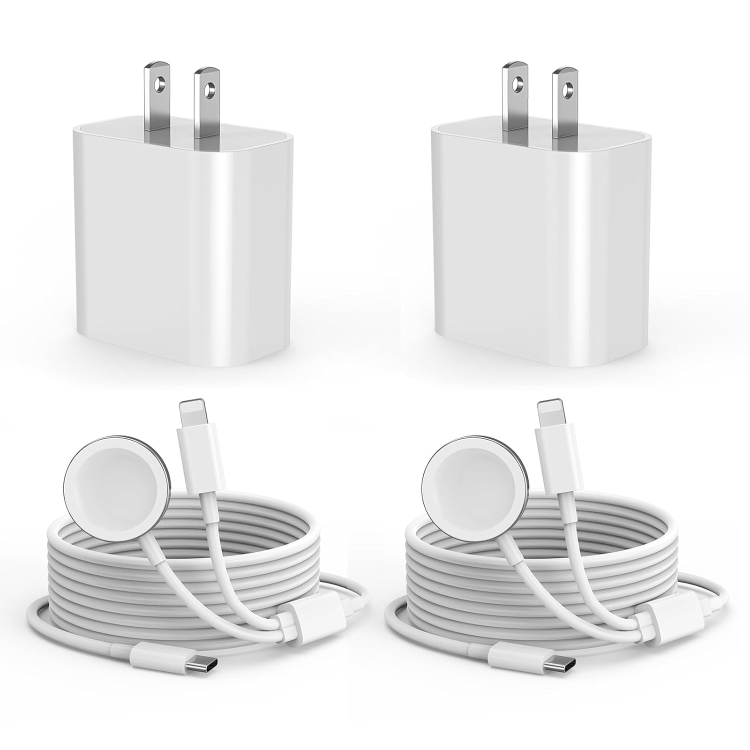 Package includes: 2 x 2 in 1 iWatch and iPhone chargers, 2 x USB-C PD chargers.