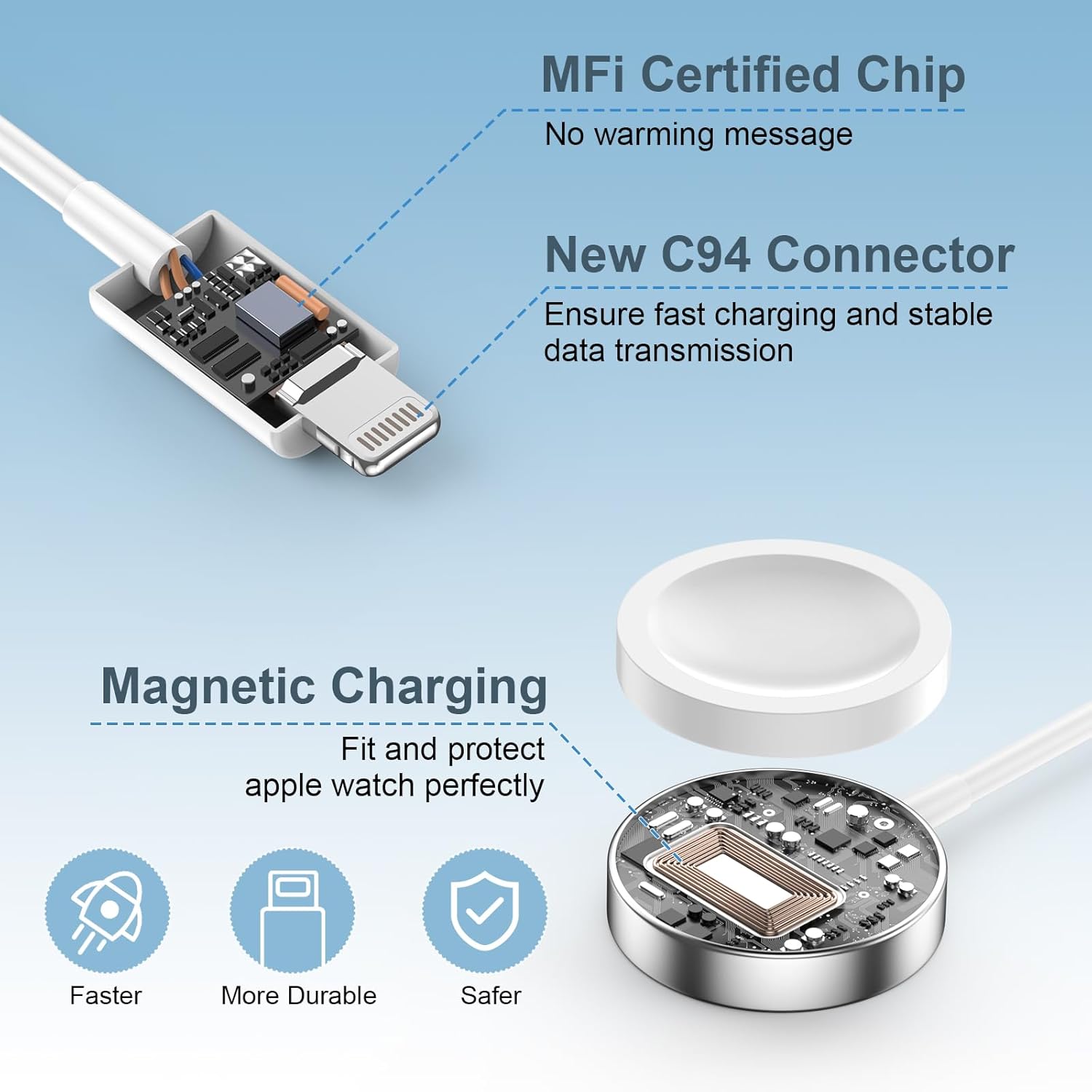 Safe and Reliable: This iWatch fast charger has built-in overcurrent, overvoltage, short circuit and overtemperature protection, protecting your device's battery from damage caused by overcharging.
