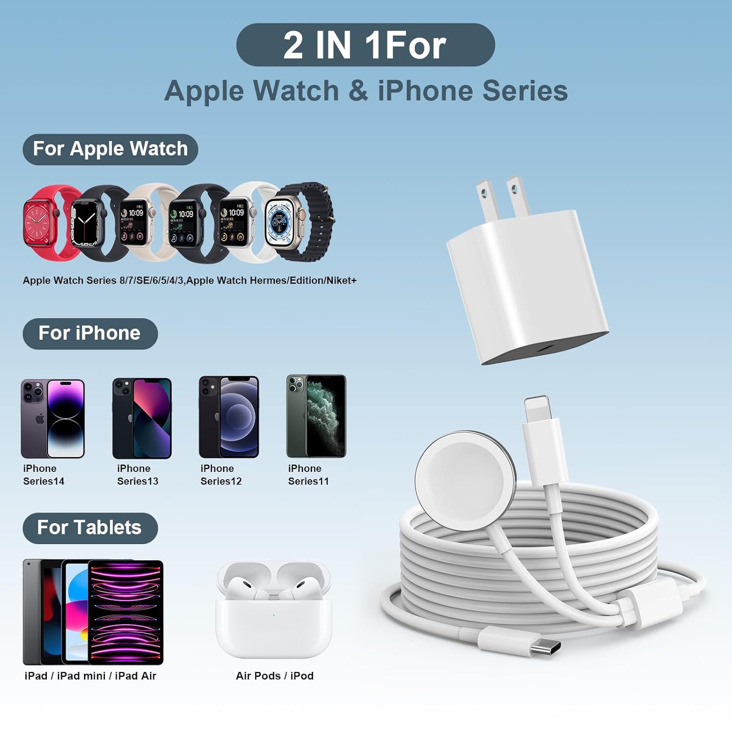 2 in 1 Chargers for iWatch and iPhone: This adapter cable can be used to charge both your iWatch and iPhone at the same time, saving you time.