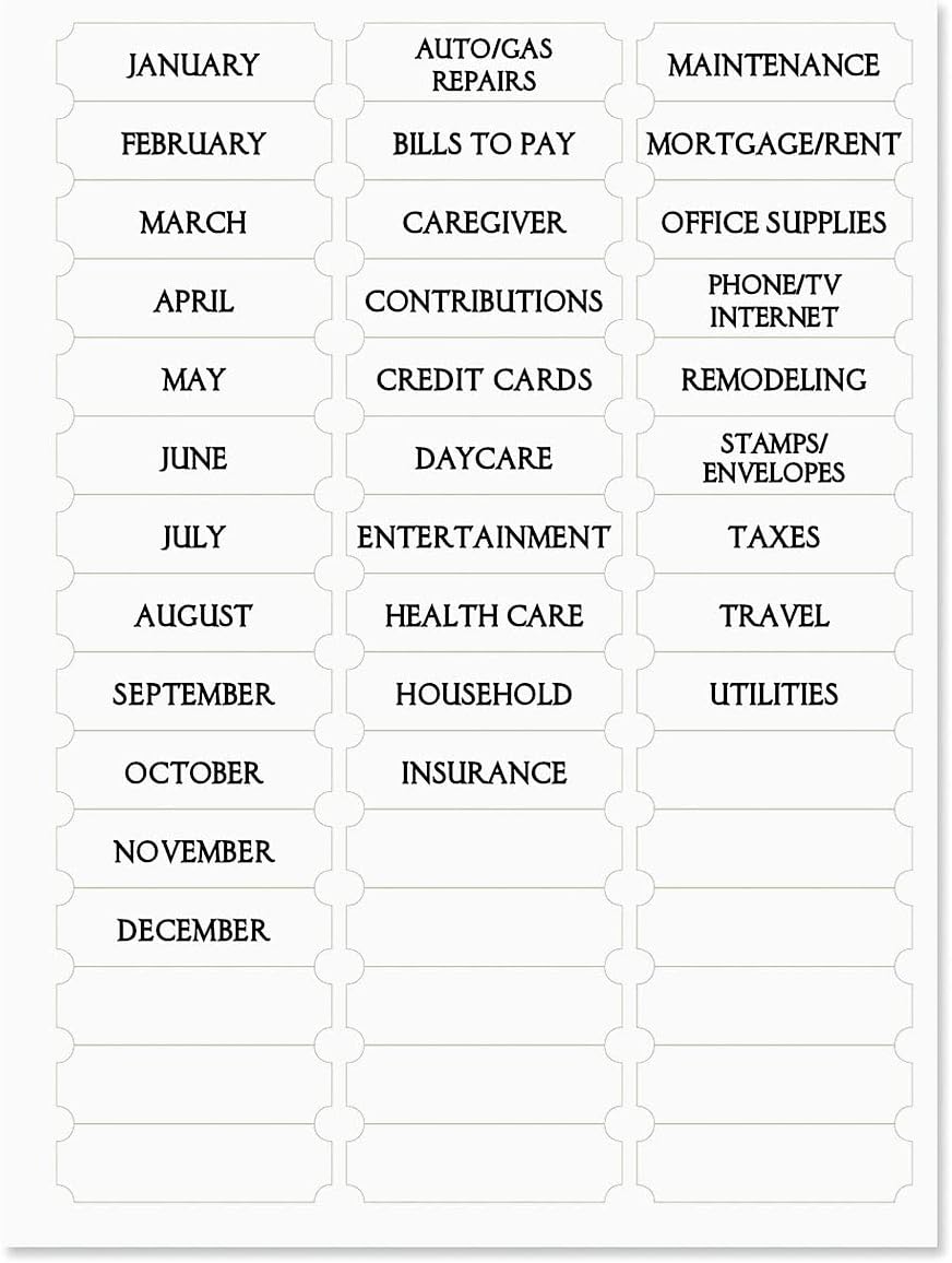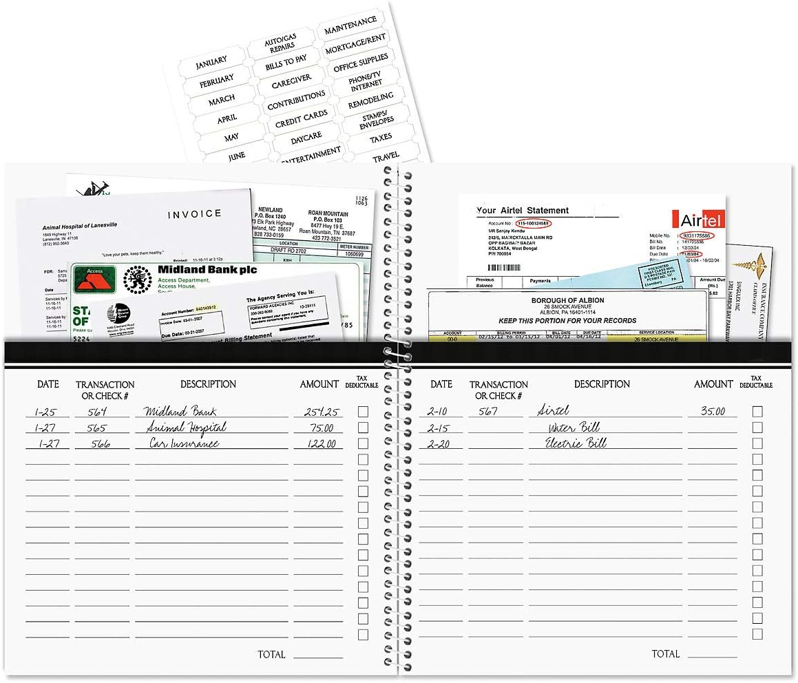 TRACK EXPENSES AND STORAGE RECEIPTS: Pages for writing down and storing monthly bills with 14 pockets to store bills and bank statements, plus 32 stickers to help you stay organized