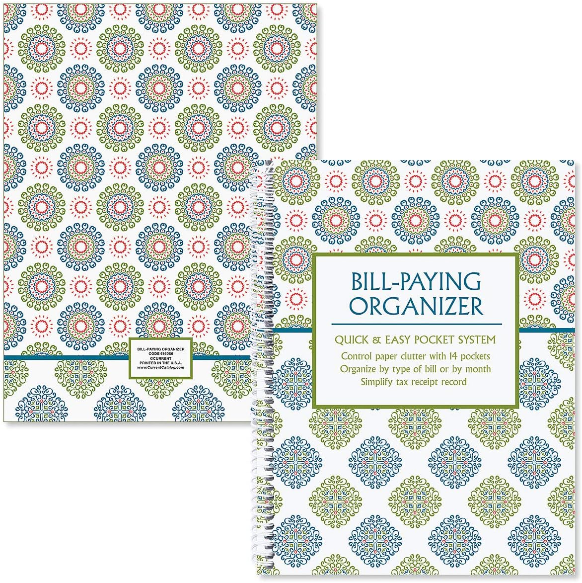 DIMENSIONS: Current bill pay organizers are a convenient 9″ x 12″ size with 14 pocket pages and 32 sticker labels.