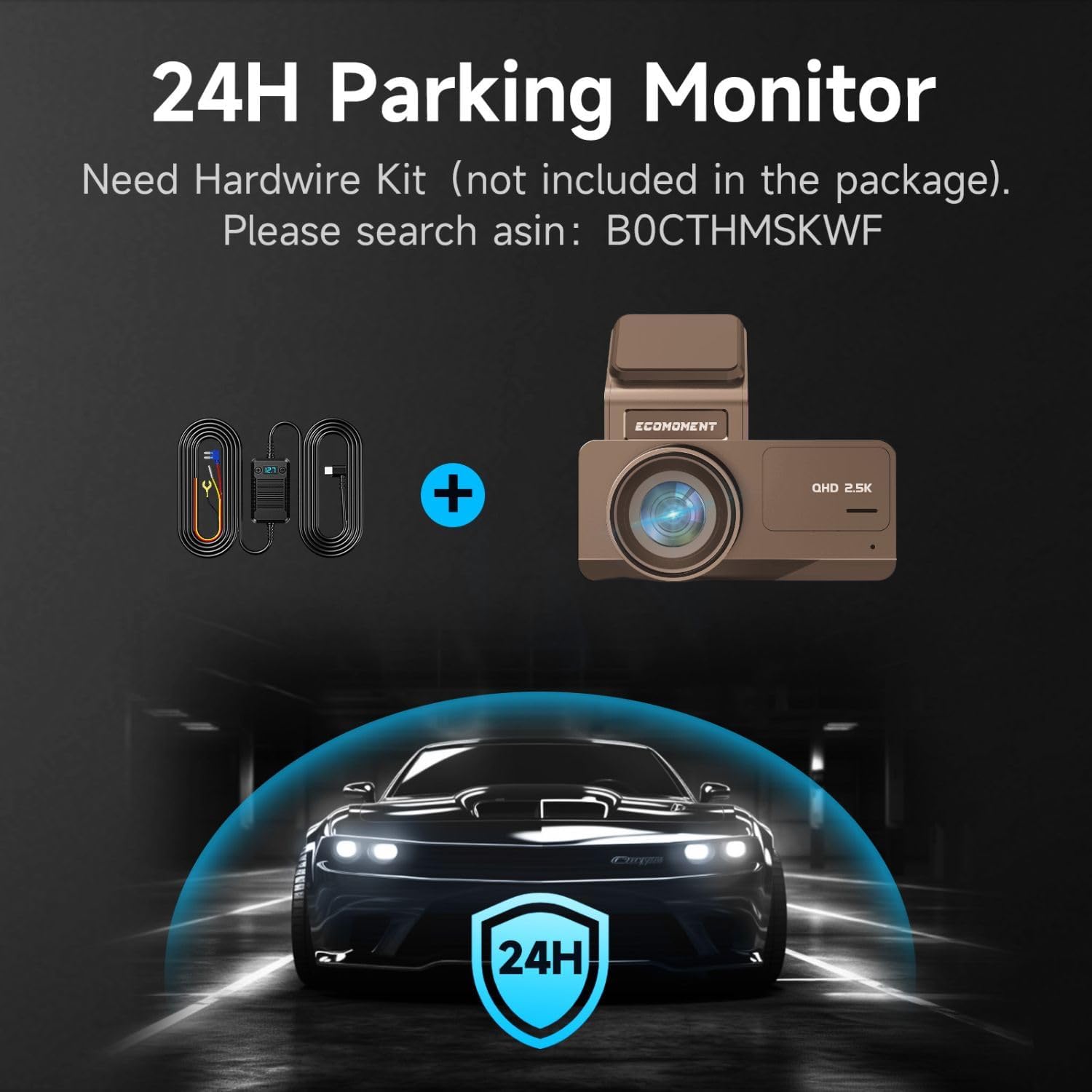 Built-in Lithium Battery: Ecomoment S70 front and rear dash camera with built-in lithium battery supports collision detection while parking and can automatically turn on and record video for about 30 seconds, then turn off. If you need the 24/7 parking monitor, please use the hardwire kit (ASIN: B0CTHMSKWF).