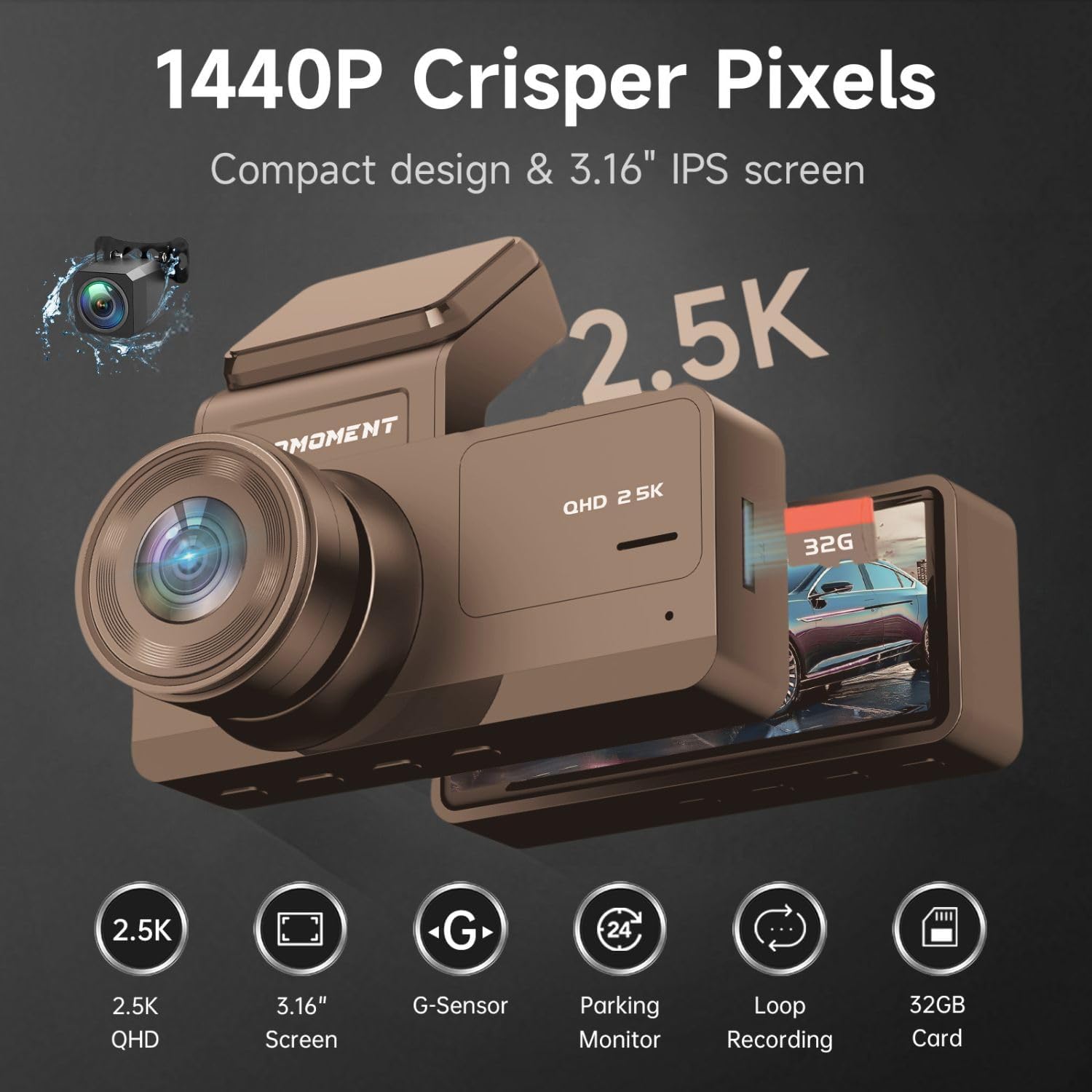 Front and Rear Dash Cam: 2.5K+1080P Dual Dashboard Camera for Car…