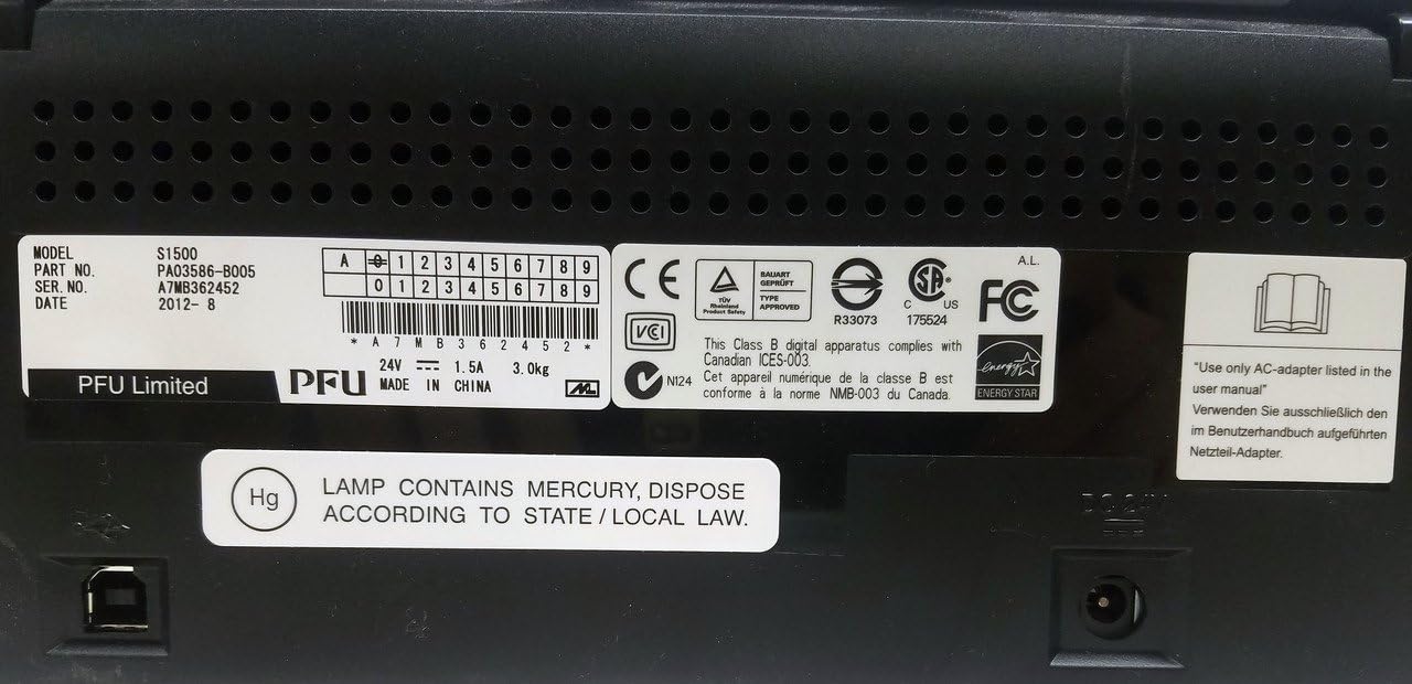 Fujitsu ScanSnap S1500 Scanner with New Adapter, Cable, Cable, S…