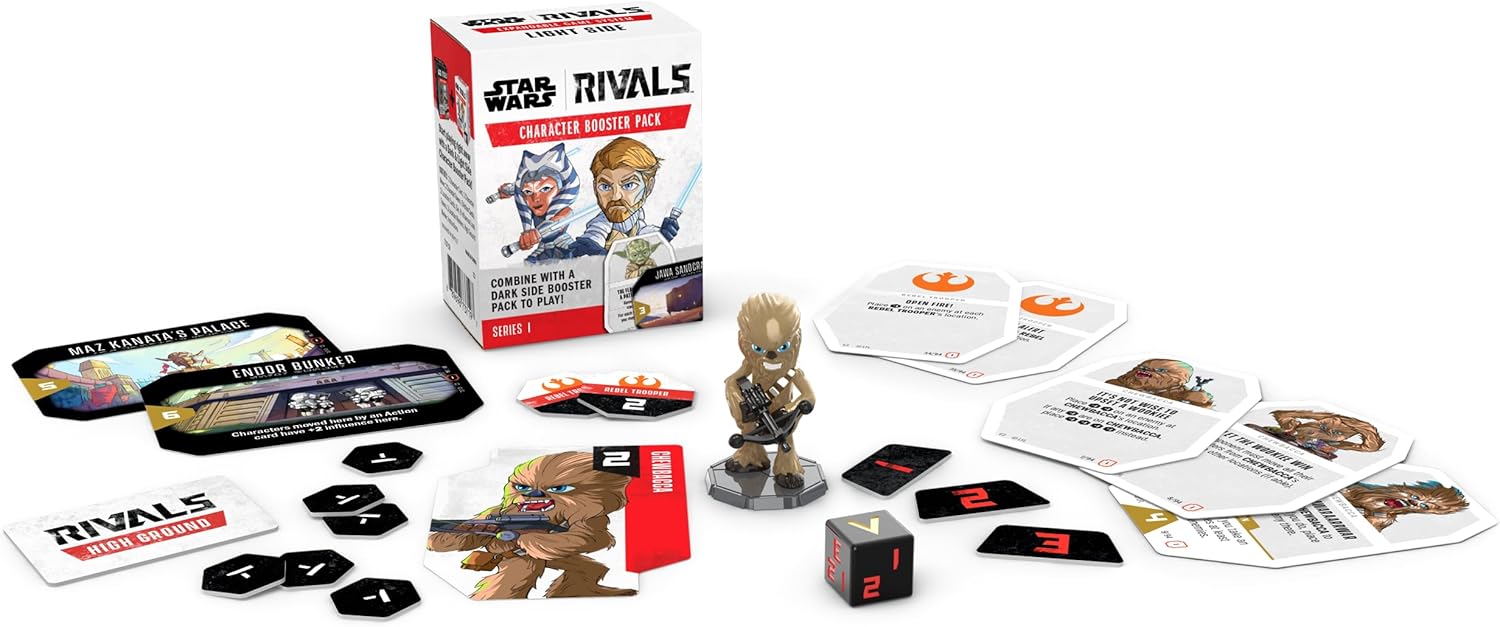 The fate of the galaxy is in your hands! Star Wars Rivals puts you in control of the battle between Light and Dark. Gather your forces and outmaneuver enemies in your duels for strategic control. With 30 characters and dozens of iconic locations, your destiny awaits! Combine a booster pack of light side and dark side characters to play. Your journey starts here!