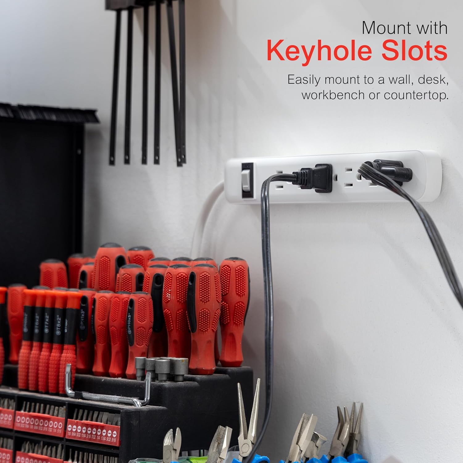 Functionality: Included keyhole slots make this unit easy to mount on a desk, table or counter; The reset switch puts power at your fingertips for easy control of your electronic devices.