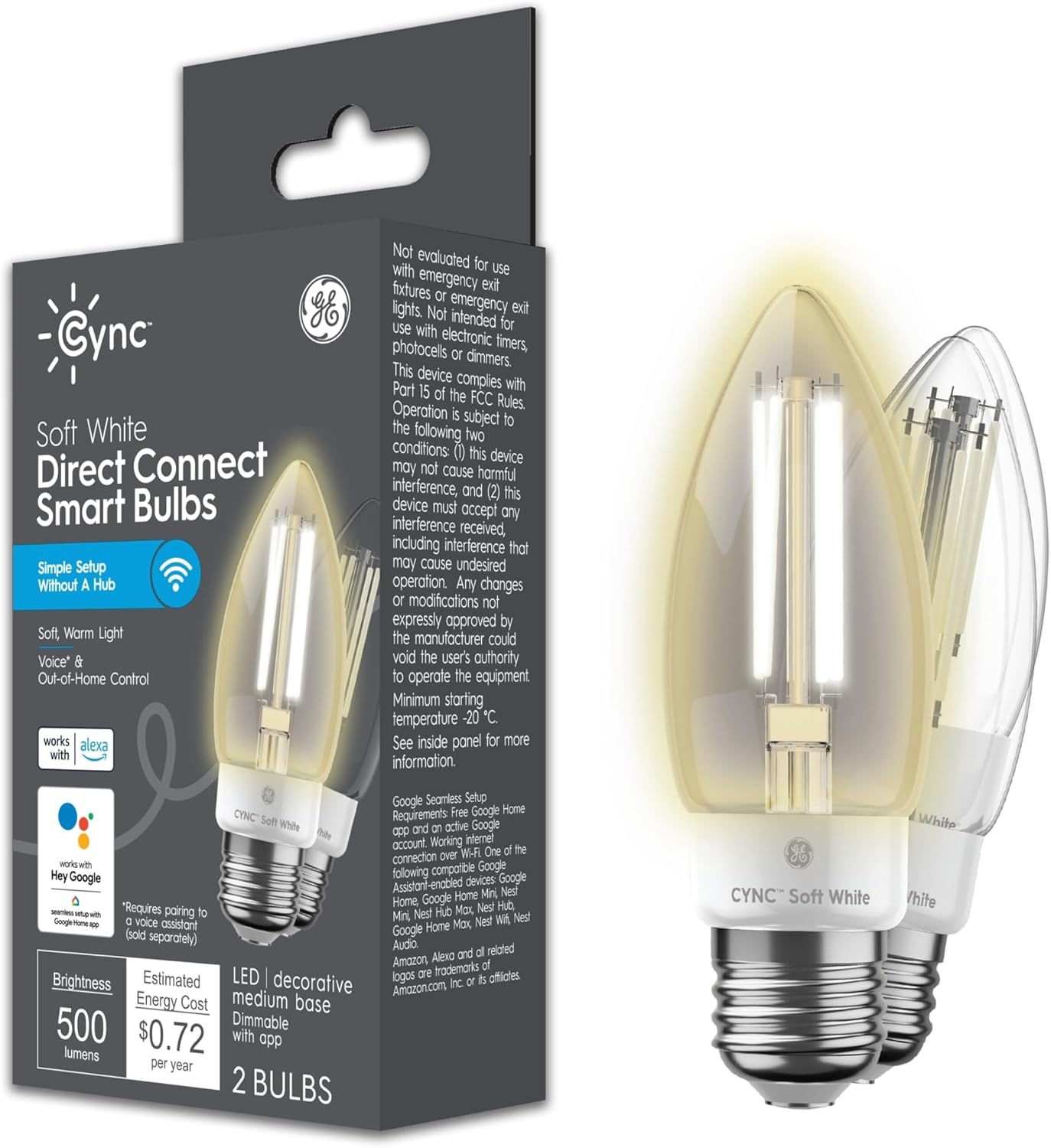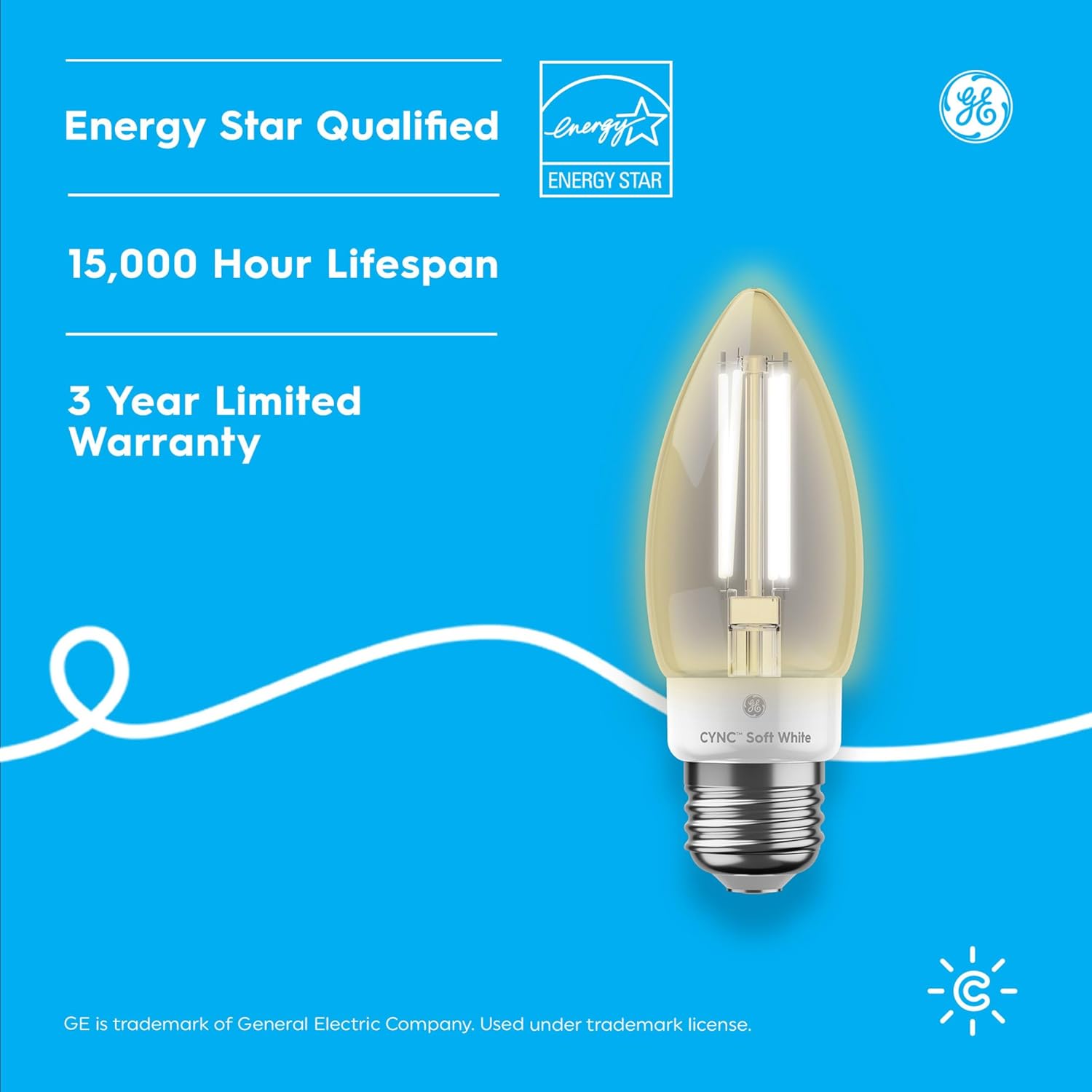 Energy-efficient Smart Indoor Bulb: CYNC candle-style smart LED bulbs replace 60-watt bulbs to bring soft, warm light to your indoor space and enhance your smart home.