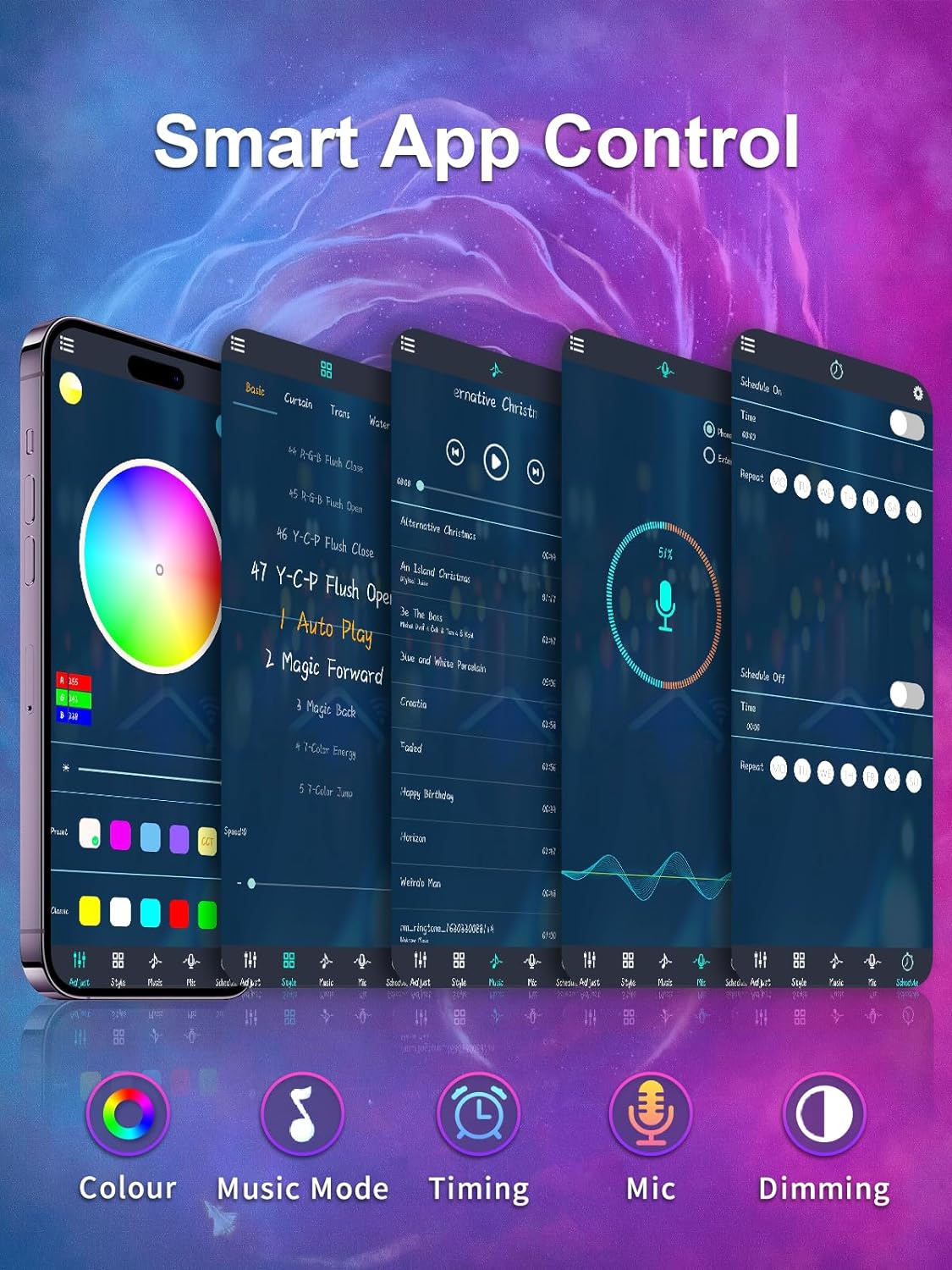 Wide range of applications: The 16.4ft LED strip is good for bedroom, hallway, TV and mirror decorations. The strip will run to the rhythm of the music.