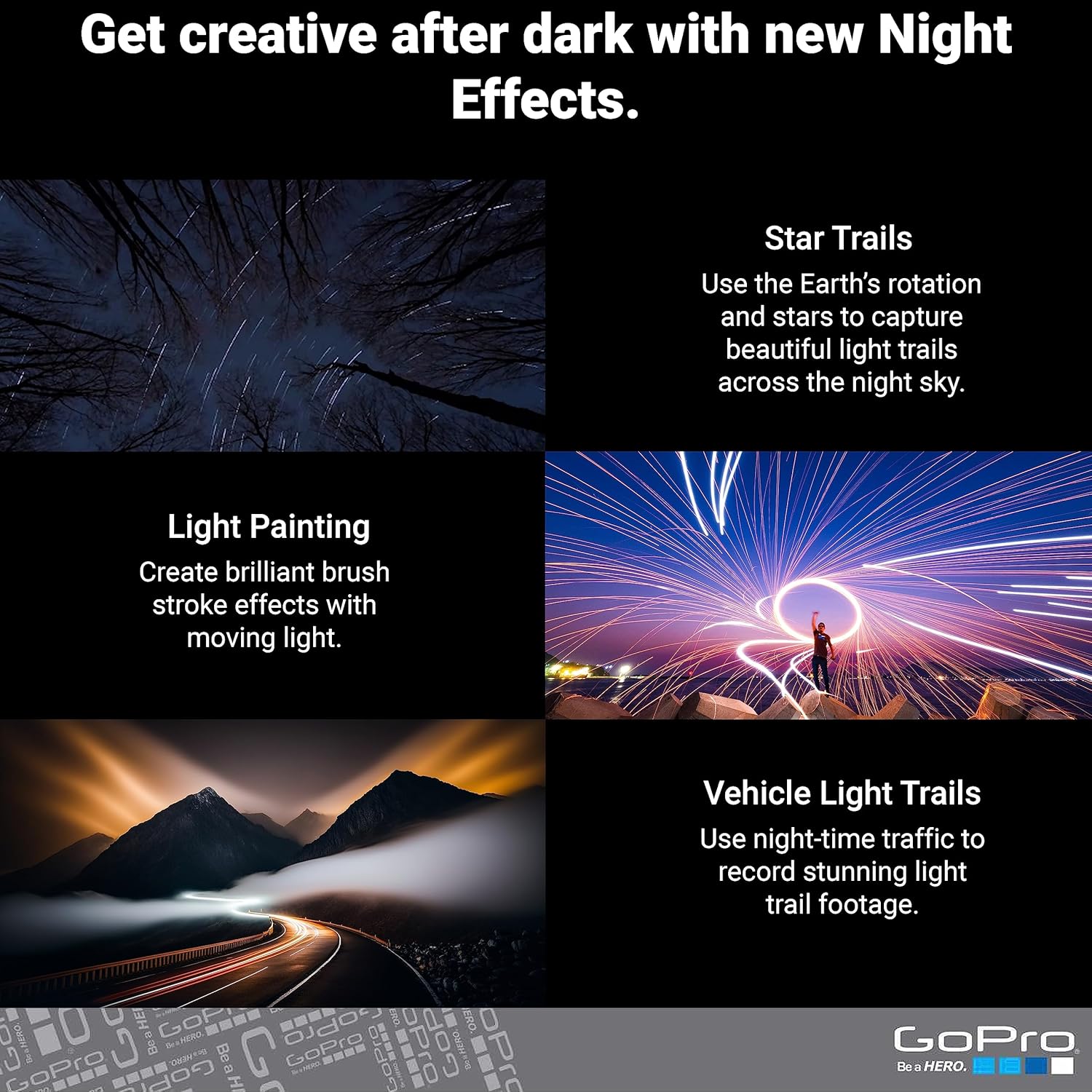 Capture. Charge. Relax. That’s all it takes to send incredible highlight videos to your phone automatically.1 Start capturing your adventures with HERO11 Black, the most powerful GoPro yet. It features front and rear LCD screens that let you frame your shots perfectly, plus a new image sensor that unlocks the highest, widest field of view ever seen in a HERO camera. The result is higher image quality, better video stabilization, and the flexibility to turn your footage into wide, cinematic shots or extra-tall vertical shots for social media posts. 5.3K video and 27MP photos help you relive your best moments in stunning detail, while Emmy Award-winning HyperSmooth 5.0 stabilization with Horizon Lock keeps your footage straight even if your camera pans a full 360°. After your adventure, simply plug in HERO11 Black to charge and relax. While you relax, your footage is uploaded to the cloud, automatically turned into an amazing highlight video, and sent to your phone, ready to share.
