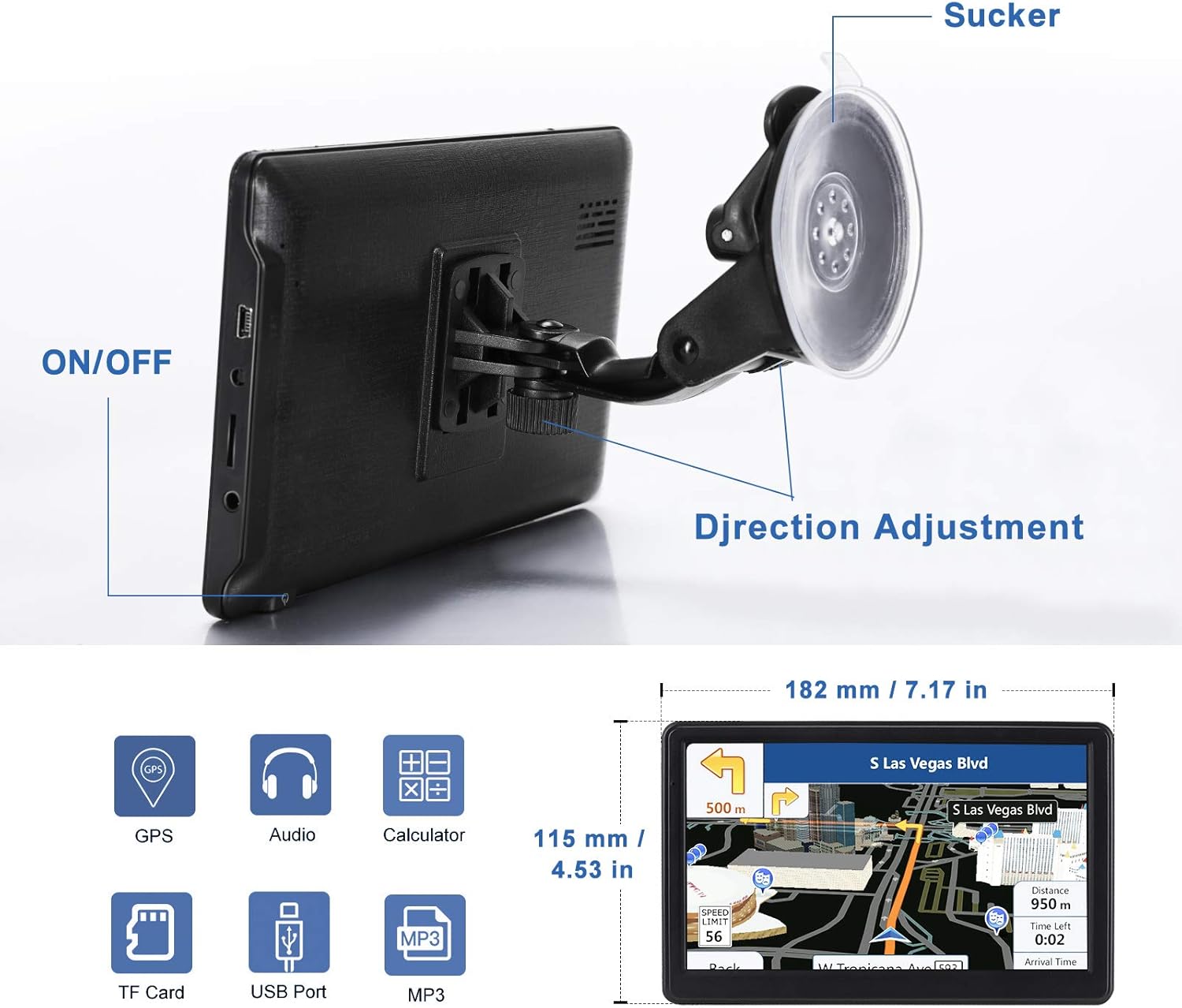🚗【Performance Upgrade】Using 2500mah polymer battery, 5v 2.5a -150cm line car charger, 7 inch high-definition sensitive touch screen, resolution 800*480. CPU: Wince Mediatek2531. Built-in 8gb Rom 256mb Ram, maximum support 32g extended memory, large capacity can accommodate you to store maps and materials.