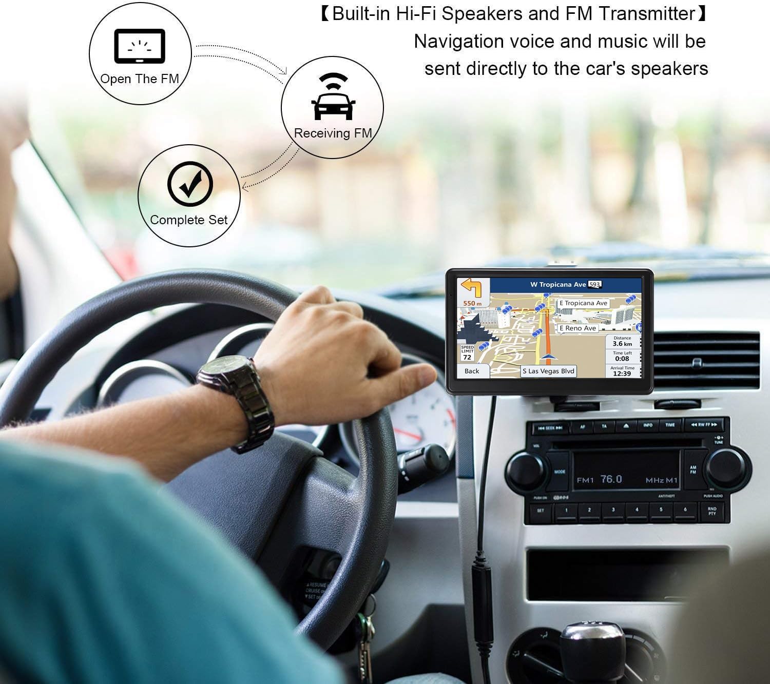 ✔ The navigation voice can be synchronized with the car player via FM