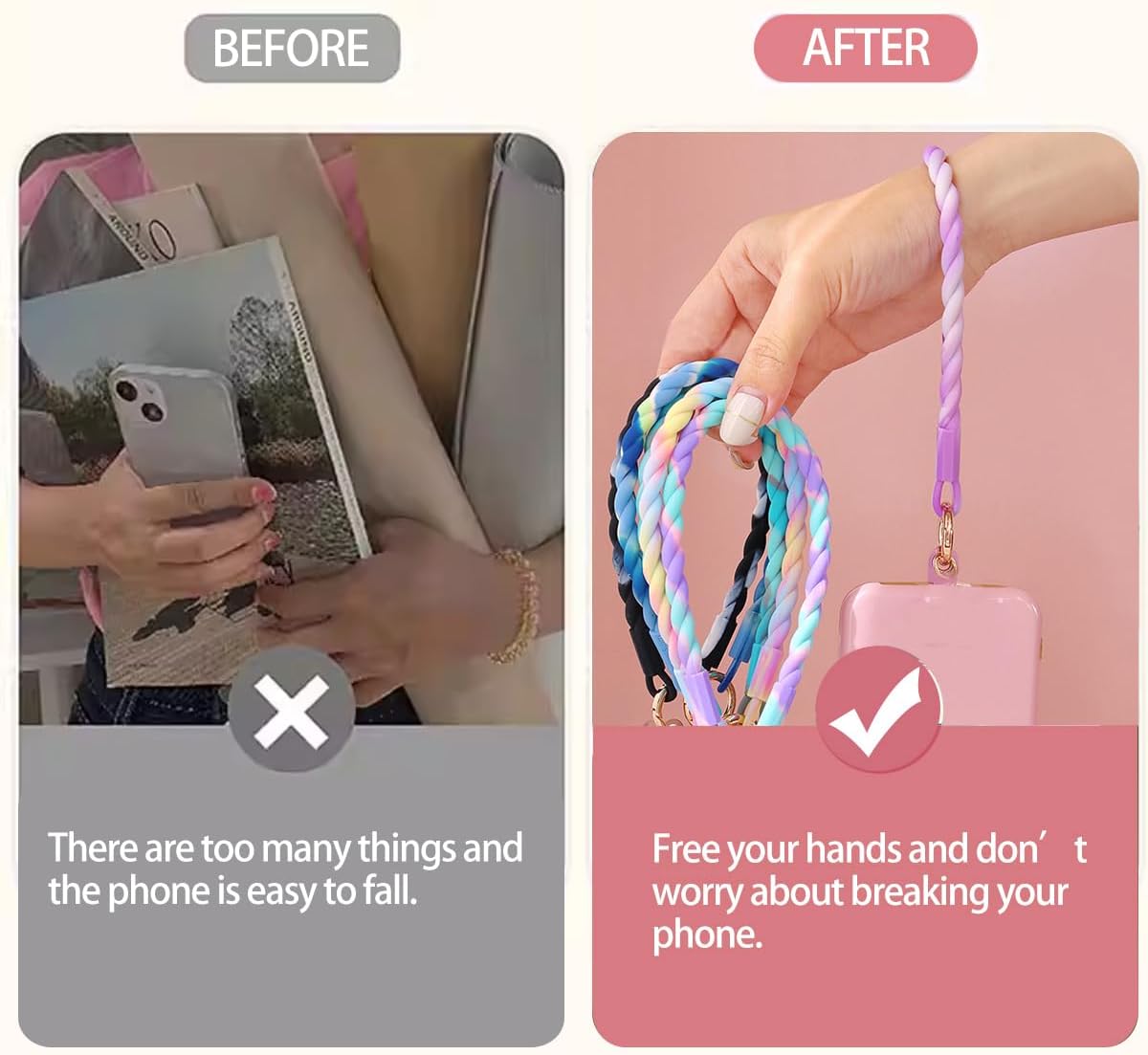 Use it as you like: The lanyard is not only used for mobile phones, but also for keys, car keys, card holders, women's slim wallets, etc.