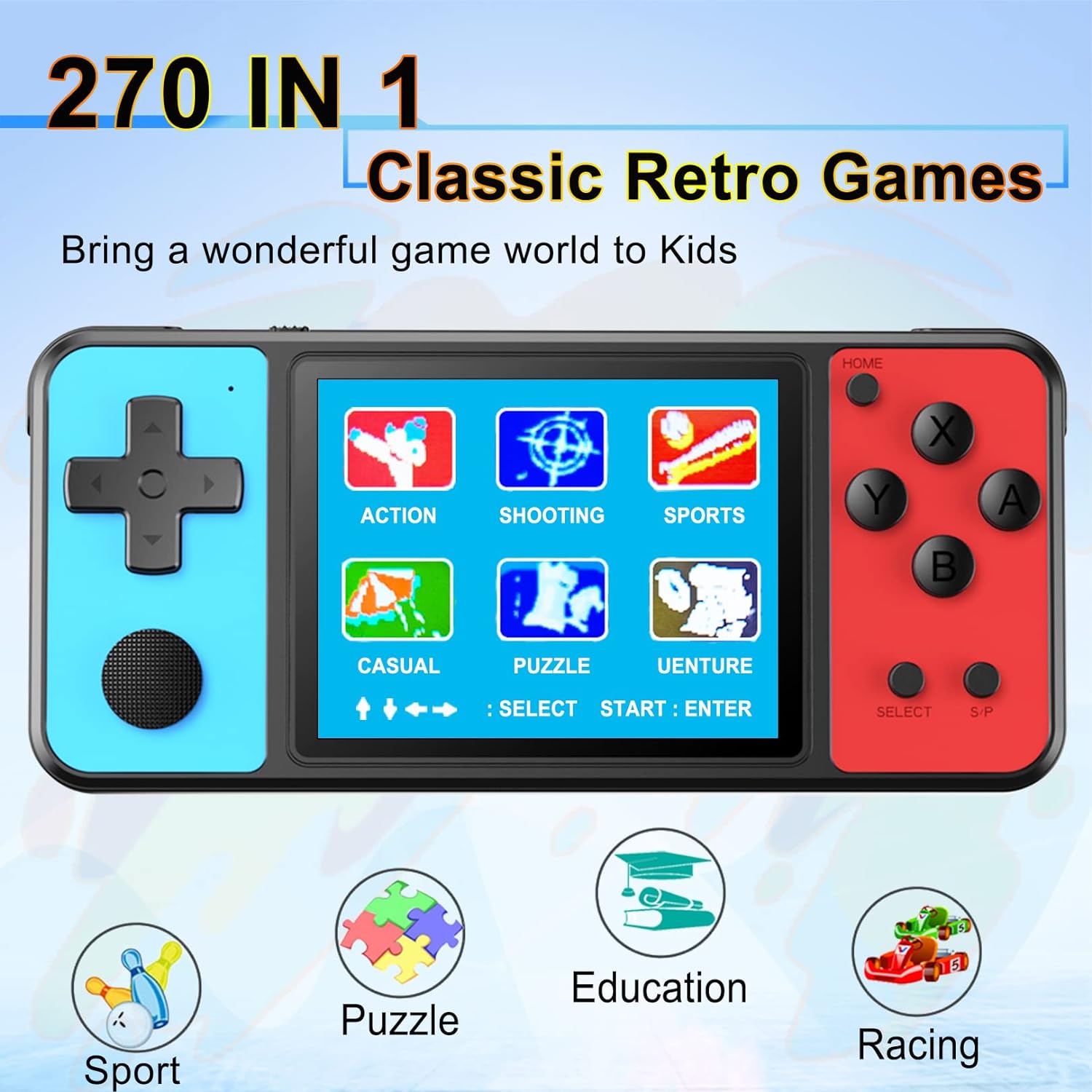 💦New Games: Built-in 270 brand new puzzle games. You may not know most of them, but they are definitely full of fun. Believe that you and your children will fall in love with this little machine.