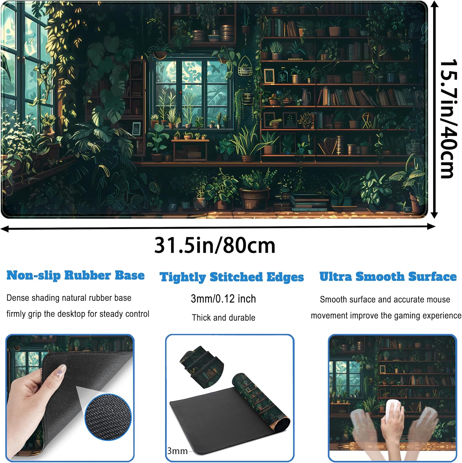 Large size: 31.5 inches × 15.7 in (800 mmx400 mm). Large size, give the mouse enough space to move, meet your space needs
