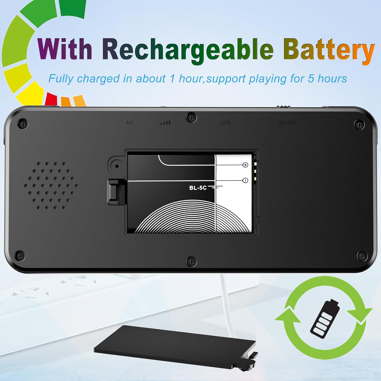 Loading an hour can play for 4-6 hours. With a low battery reminder function and full load indicator