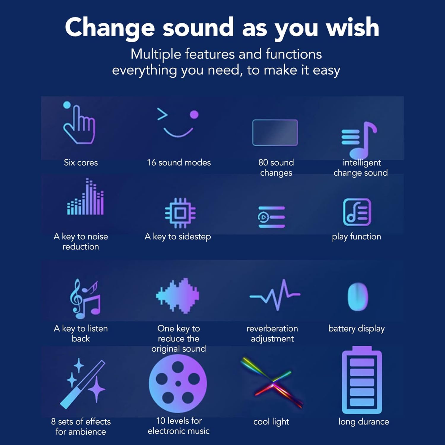 Sound change modes: 8 types (can be adjusted at 10 levels)