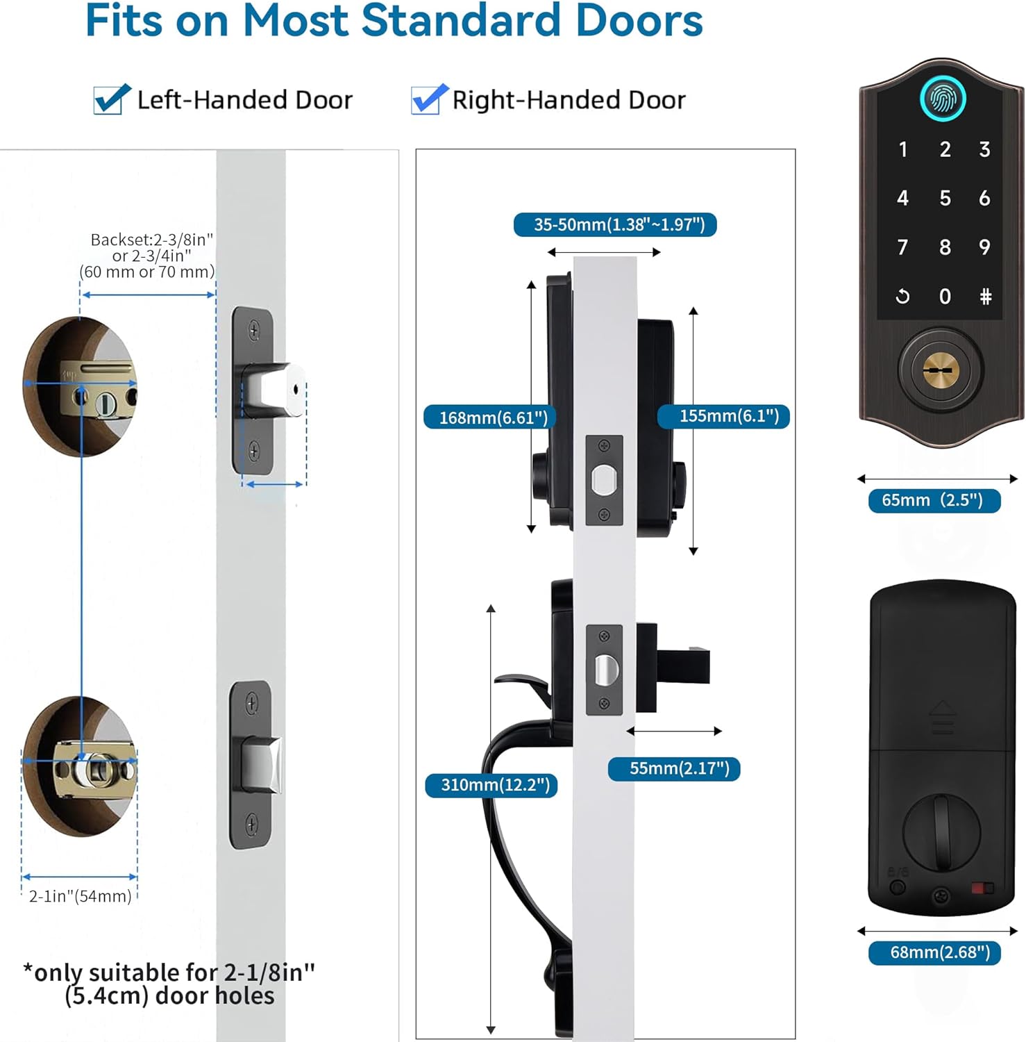 [Biometric Fingerprint Access] Unlock your door instantly with a quick digital footprints, offering a safe and convenient entrance without the need for keys or codes. Never worry about the lost, stolen or copied keys again.