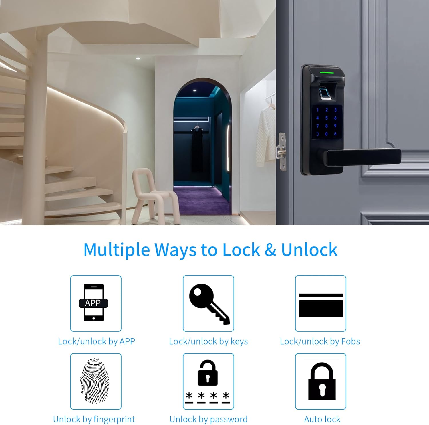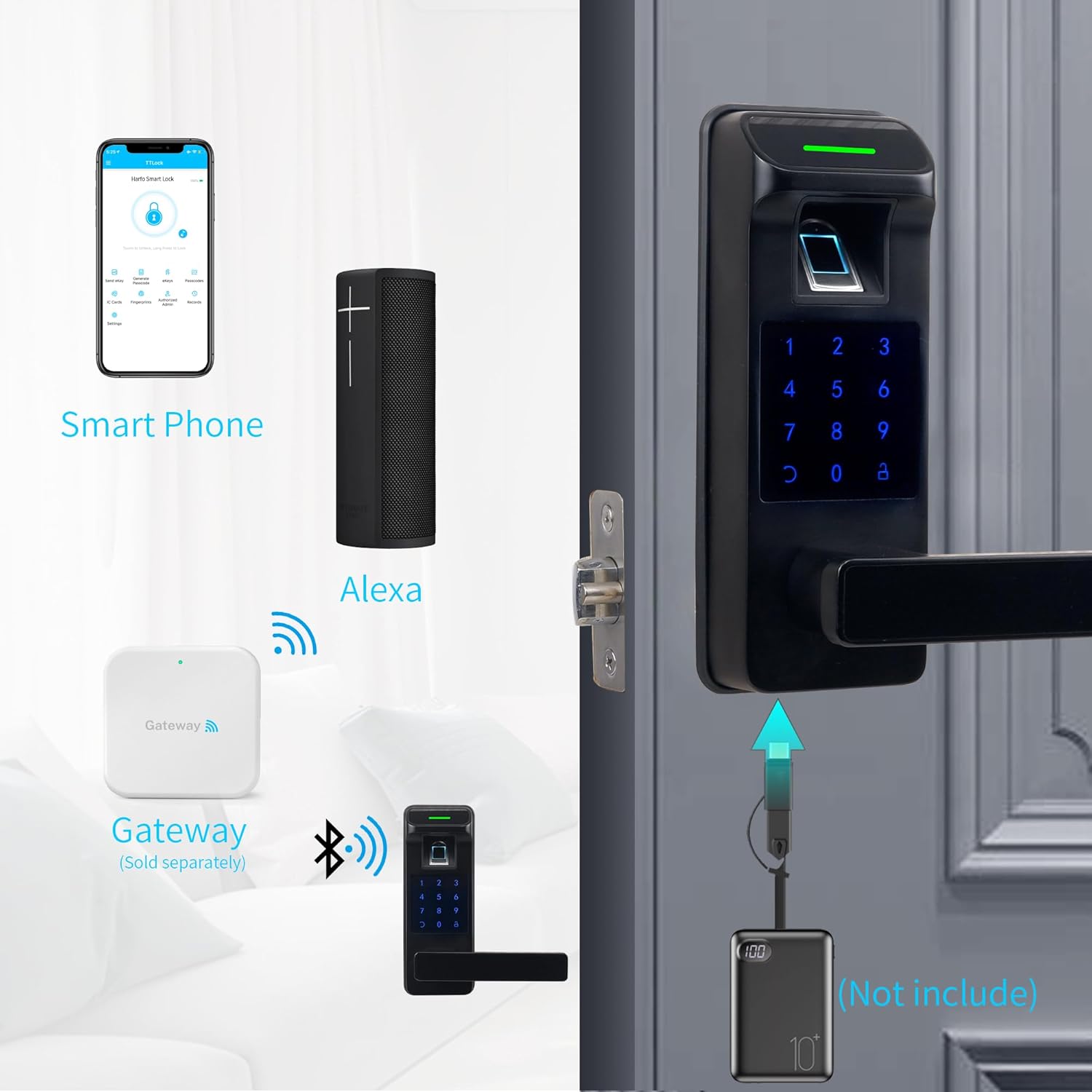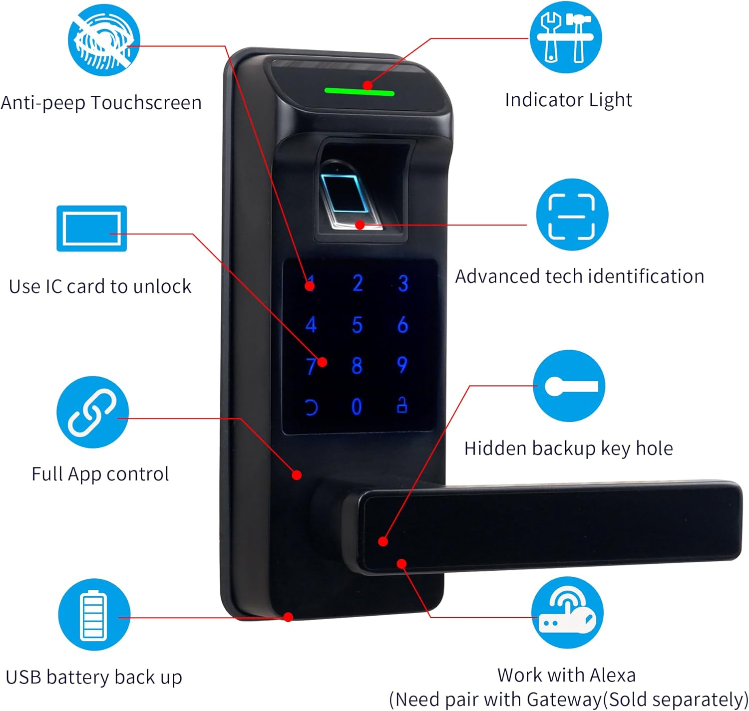 [All-in-1 Fingerprint Door Lock] Application control + digital footprint + password cards + IC (include 3) + backup keys. Work with Alexa and Google Assistant & Support Voice Control (I need to combine with Gateway, sold separately)