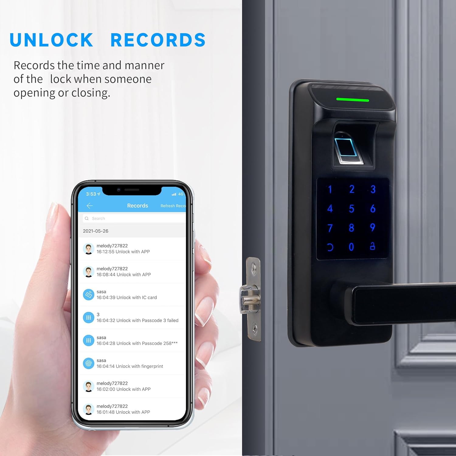 [Remote Control / WiFi Access] Bathered the keyboard block with Harfo Wi-Fi Gateway (sold separately), you can block/unlock your key-free entrance door block at any time, you can configure codes remotely and verify access records.