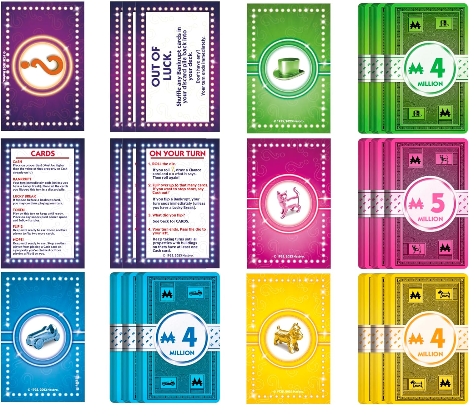 Rish everything with the voltage of a card! The Monopoly Chance game is the high -risk version and monopoly game voloplation, and it only has about 20 minutes to play! Instead of moving a tab around the board, each player receives a tokens deck with cash cards (without paper money!) Bankruptcy and strategic cards that lend an advantage. Roll the dice and turn to so many letters. Play safely and turn the cards enough to “retire”, or risk everything for large dollars. But careful, too many overturned cards could reveal a bankruptcy card! Players compete to buy properties around the board by placing cash cards in property spaces, and sometimes about the cash of other players. But only those with the upper card at the end of the round will possess that property and can add one of their buildings to their horizon. At the end of the game, the player with the longest horizon wins! Live the night of family games with this party game at the edge of your adults and children's seat over 8 years. The names and logos of Hasbro and Monopoly, the distinctive design of the game board, the four corner squares, the name and character of Mr. Monopoly, as well as each of the distinctive elements of the board and the game pieces are registered brands of Hasbro, Inc. for its property game of property and game teams. © 1935, 2023 Hasbro. TM & ® denote trademarks.