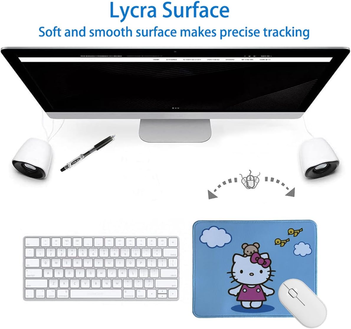 Fabric: High quality lycra fabric surface, ultra soft, easy to clean, without unpleasant smell. The mouse can be moved quickly and placed precisely on the slippery surface, fits all types of mouse.