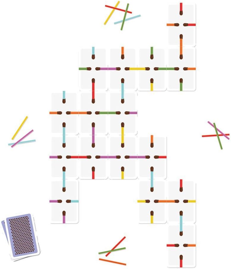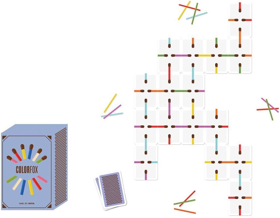 The game is a bit like dominoes, in that you have to place the colored matches next to the same color (and facing the same direction). Connect as many cards as possible to win color combinations