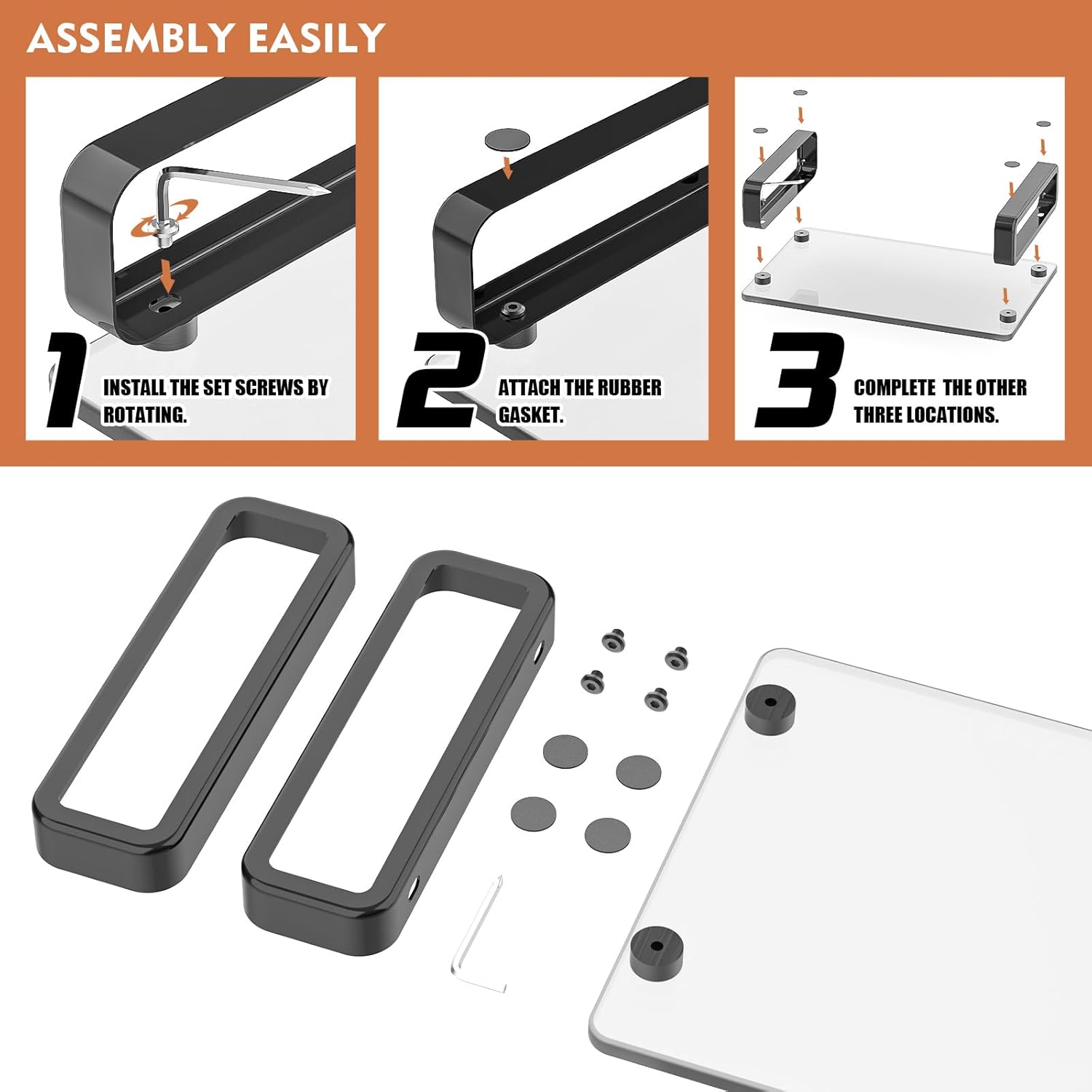 Easy Ensquile ☞ All hardware and tool are included, combine tempered glass and metal legs through the screw