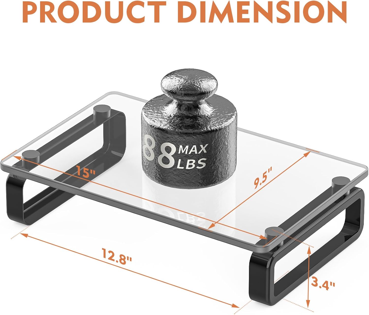 The maximum weight of this transparent glass support is 88 pounds, which fits most computer monitors.