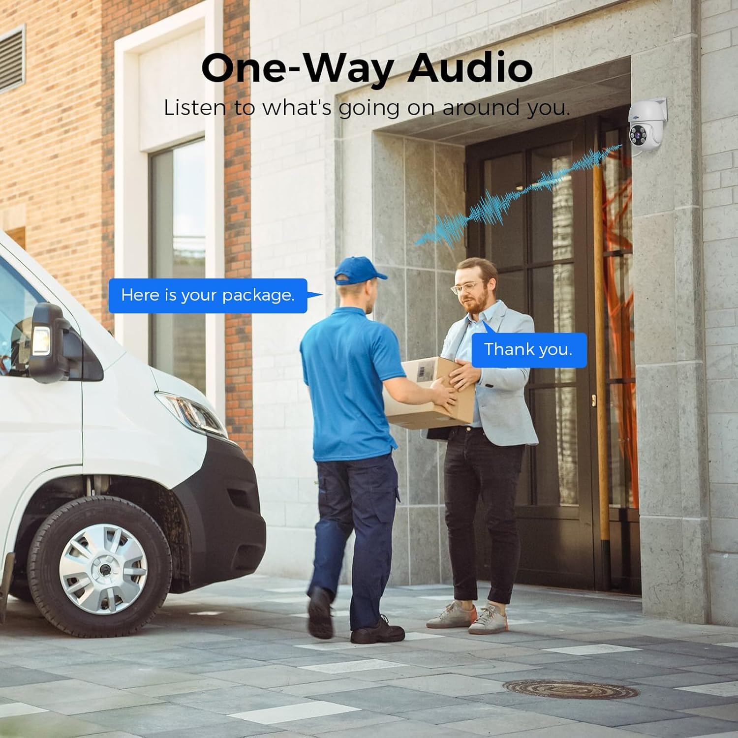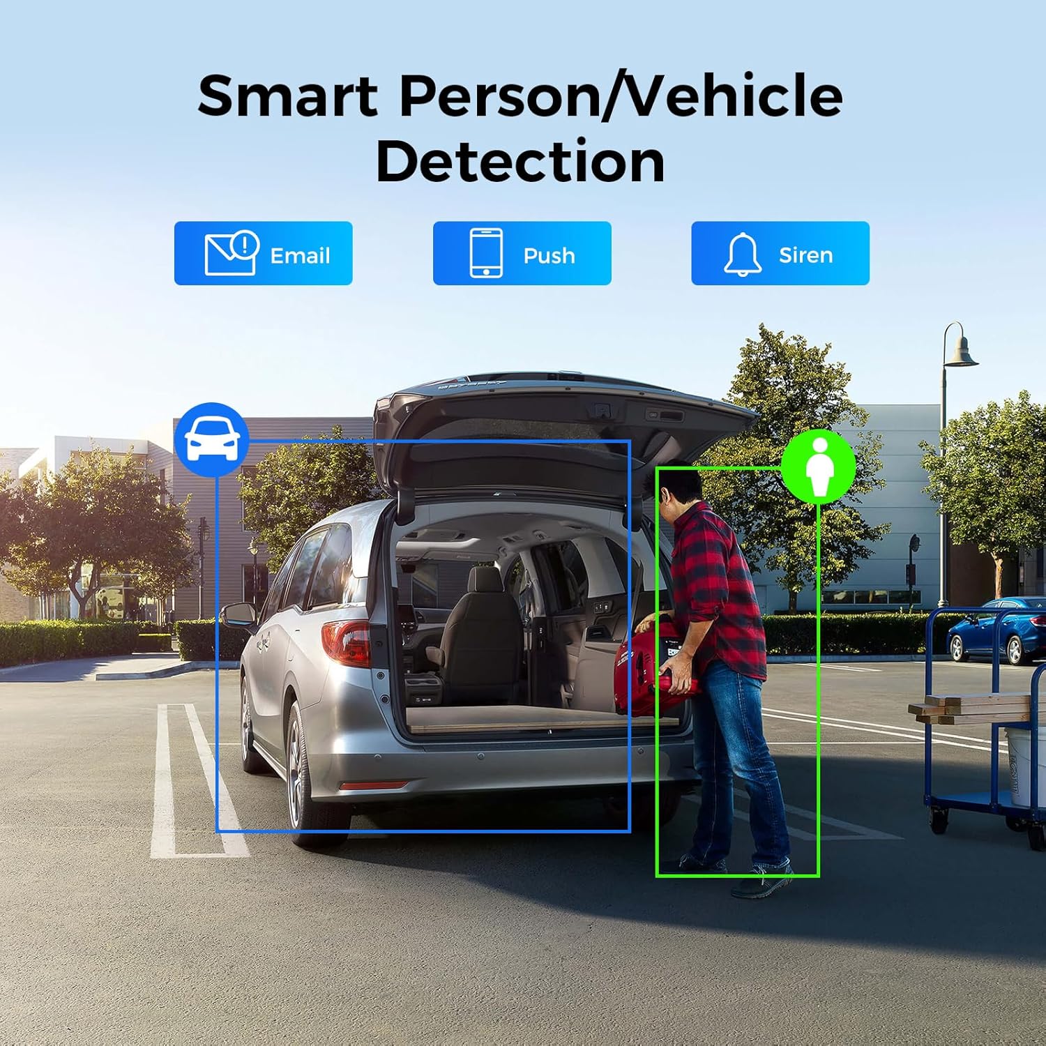 【Person/Vehicle Detection & One-Way Audio】With the person/vehicle detection feature, you can be alerted every time a person/vehicle enters your property by receiving a push notification from the phone app. The camera has one-way audio to better understand the environment. record peripheral sounds.