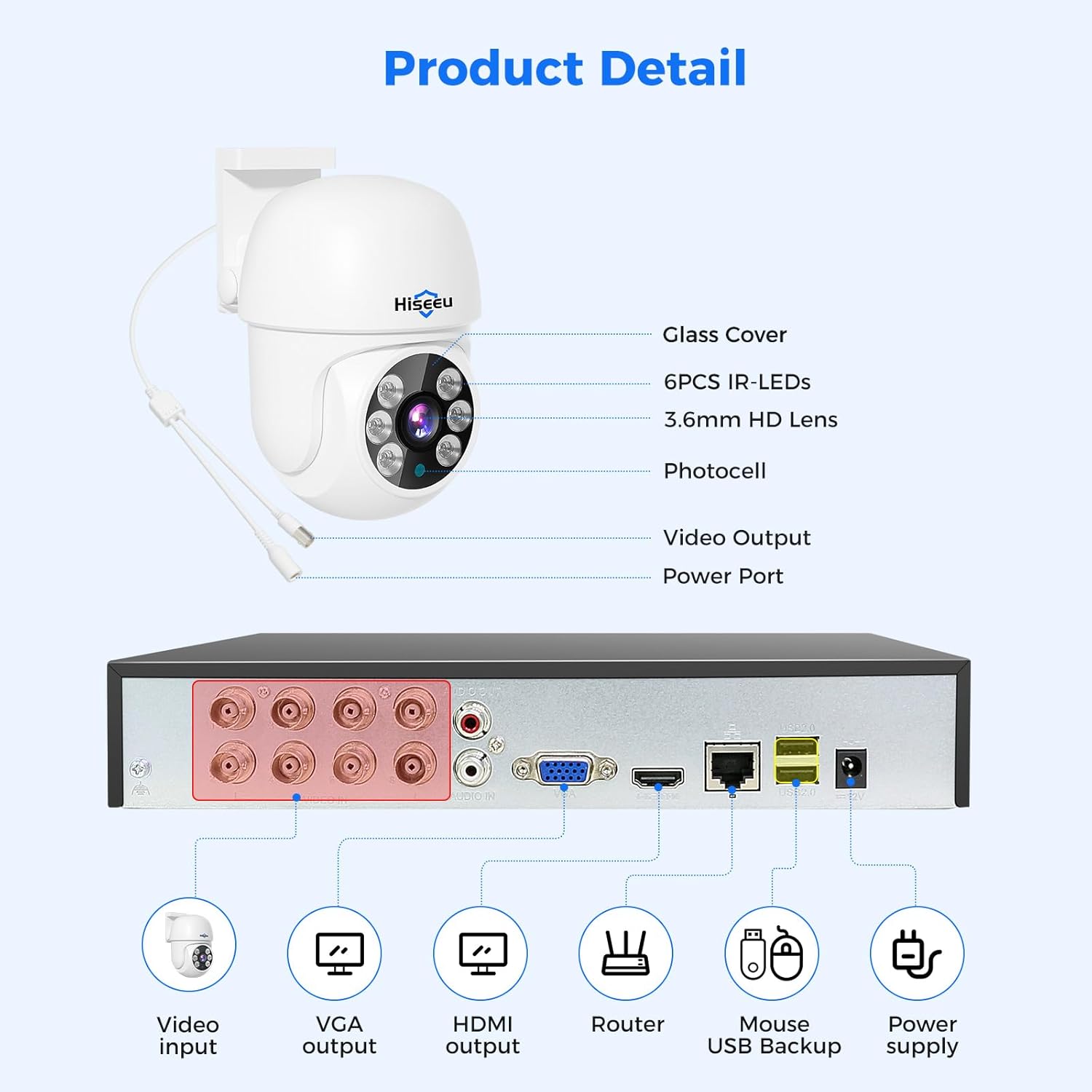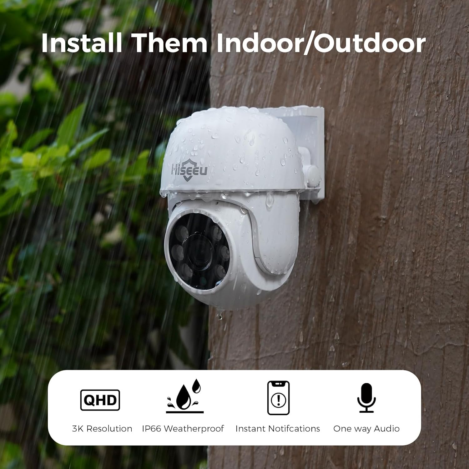 【HD 5MP Lite Higher Resolution and Clear Night Vision up to 100ft】Compared with the lower resolution 1080p/2MP, Hiseeu's 5MP Lite higher resolution will give you vivid and clear image along with night vision Clear and crisp up to 100 feet with infrared. LED lights inside the camera's automatic IR cut filter.