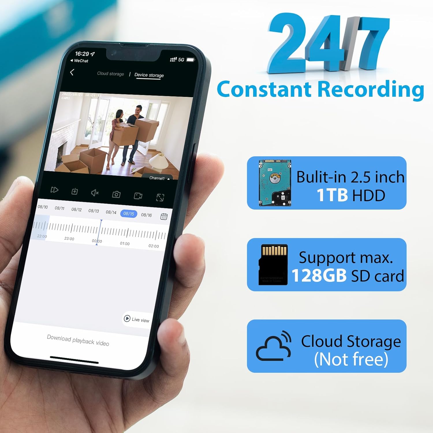 24/7 Recording & 10 Channel NVR: Improved H.265+ technology can take up less storage space without decreasing image quality, which can extend the recording duration. The pre-installed 1TB hard drive ensures recording for more than 45 days in 24/7 video recording mode. No monthly fees needed. The NVR supports 4K image output and max. 10 channel cameras recording at the same time. (NOTICE: CAMERAS DO NOT OPERATE ON SOLAR POWER. REQUIRE PLUGGED IN POWER SOURCE)