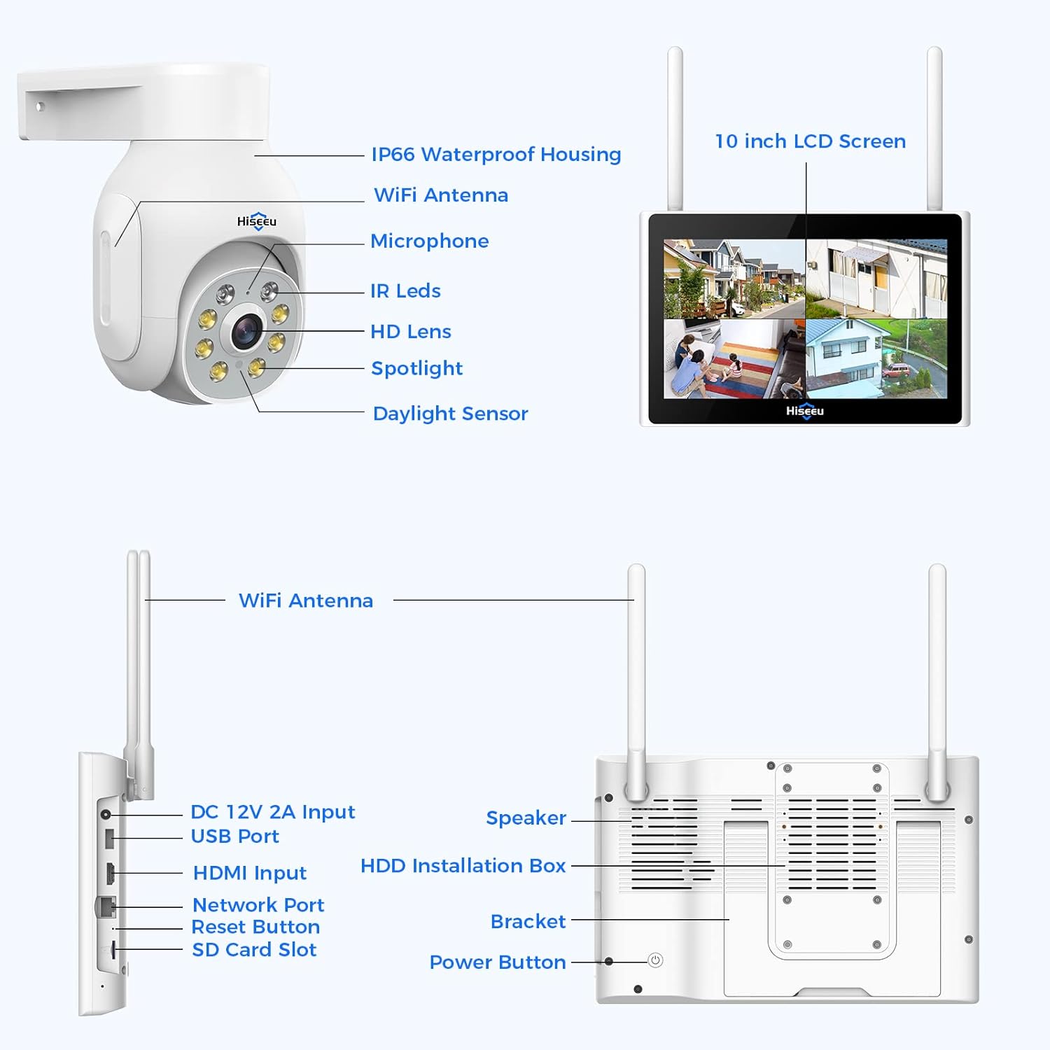 Application and remote alert notification of the telephone: the wireless outdoor camera is compatible with the “Hiseu” NVR, “Esteecloud” and Alexa application. You can receive warning notifications anywhere with a phone, see the surroundings of your home in real time.