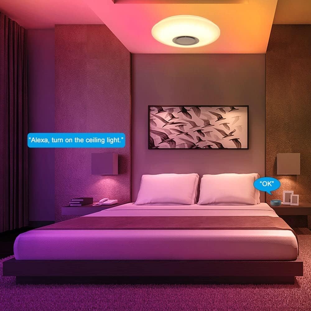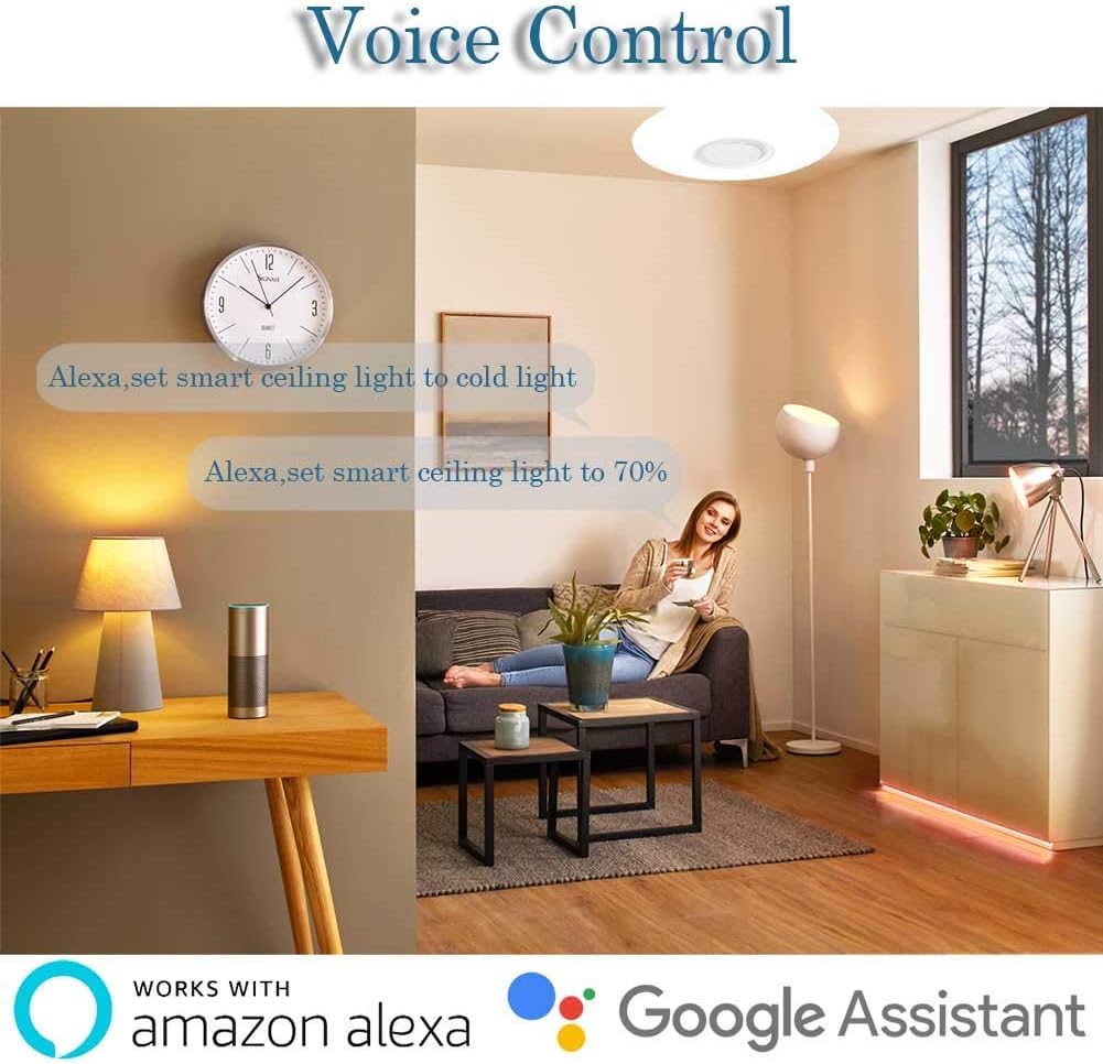 Smart Control: Through the “Smart Life” or “TuyaSmart” APP, the LED ceiling lamp can be controlled anytime, anywhere. Compatible with Alexa and Google Assistant for voice control.