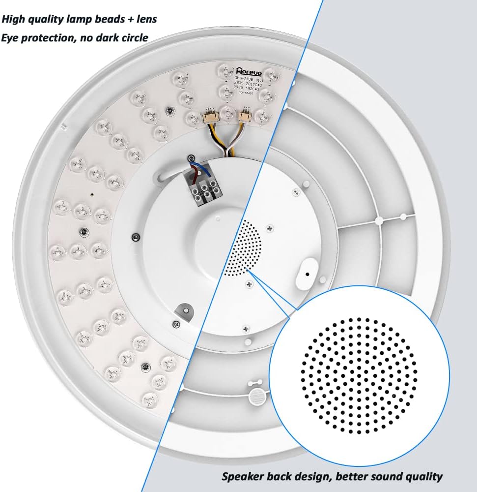 HOREVO Ceiling Lights with Bluetooth Speaker, 15 Inch Smart…