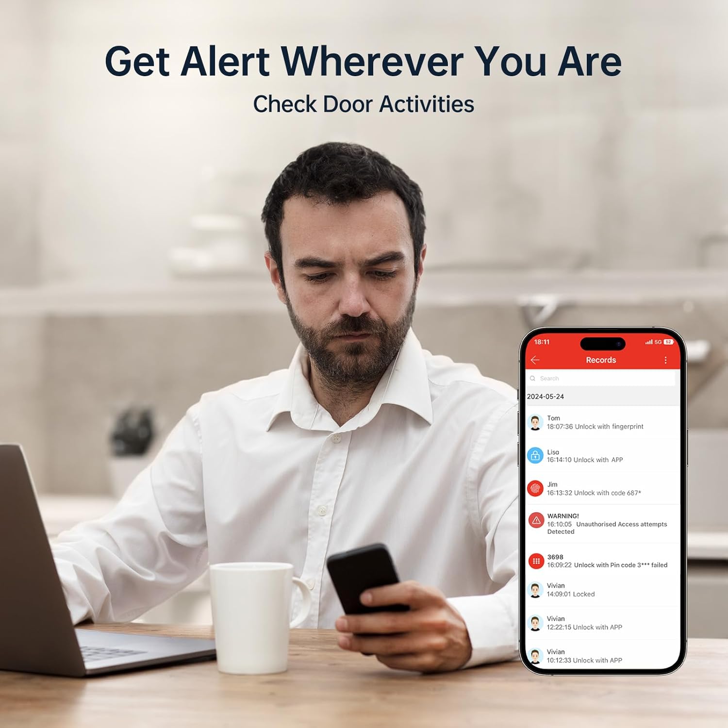 【Intelligent user management】 With more than 250 customizable user codes, generate and share flexible access codes, insurance and insurance with family members, visitors and friends. Up to 100 digital footprints and 1000 key keys can be stored in this smart block enabled for Wi-Fi. The WiFi door lock can also be established automatically 5-900 and a touch block, friendly with users and convenience.