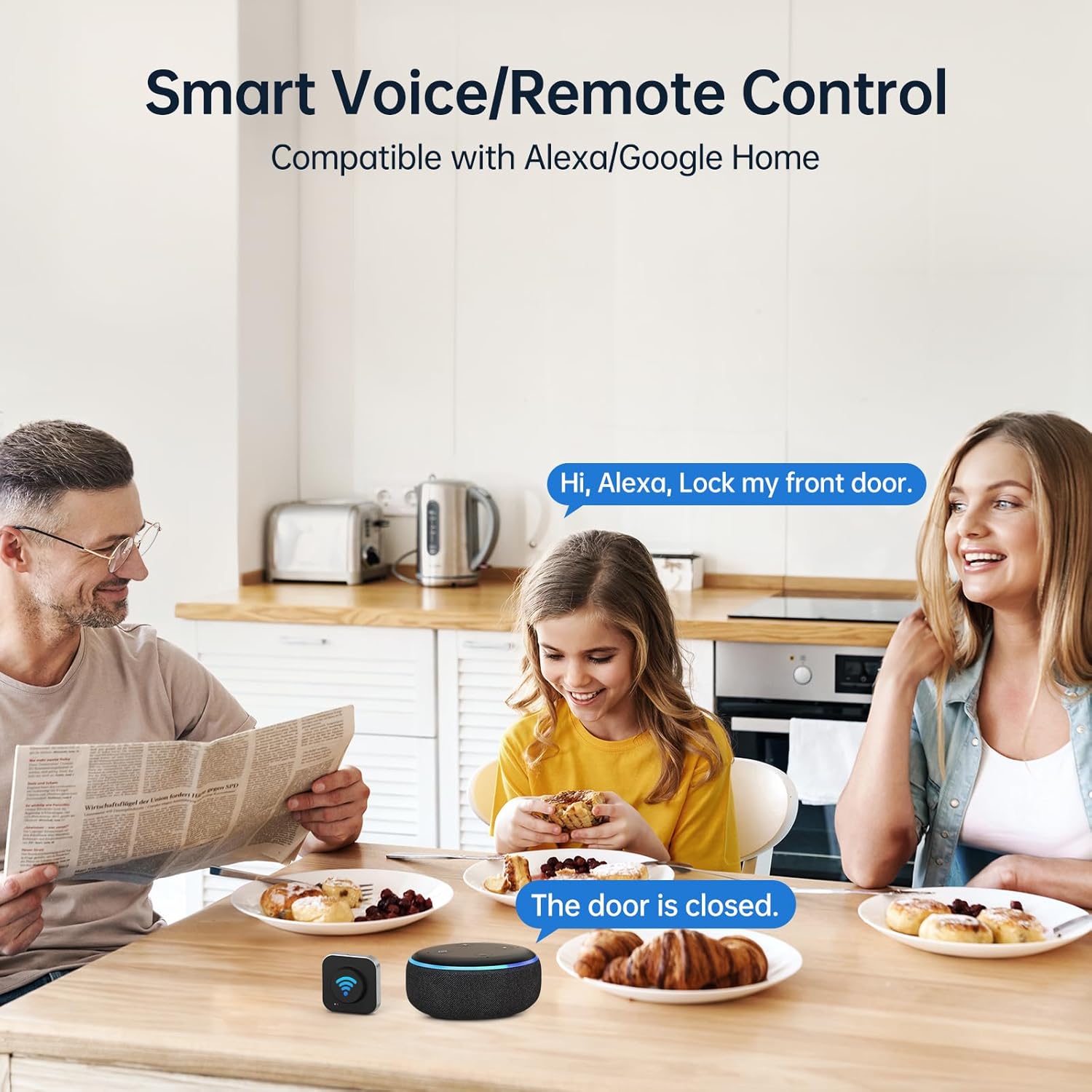 【Multiple ways of unlocking】 The lock -free entrance door block unlocks its door through the fingerprint + Bluetooth application + remote access + passcode + ic Fobs + mechanical keys + key + woks with Alexa/Google Home Voice Control.