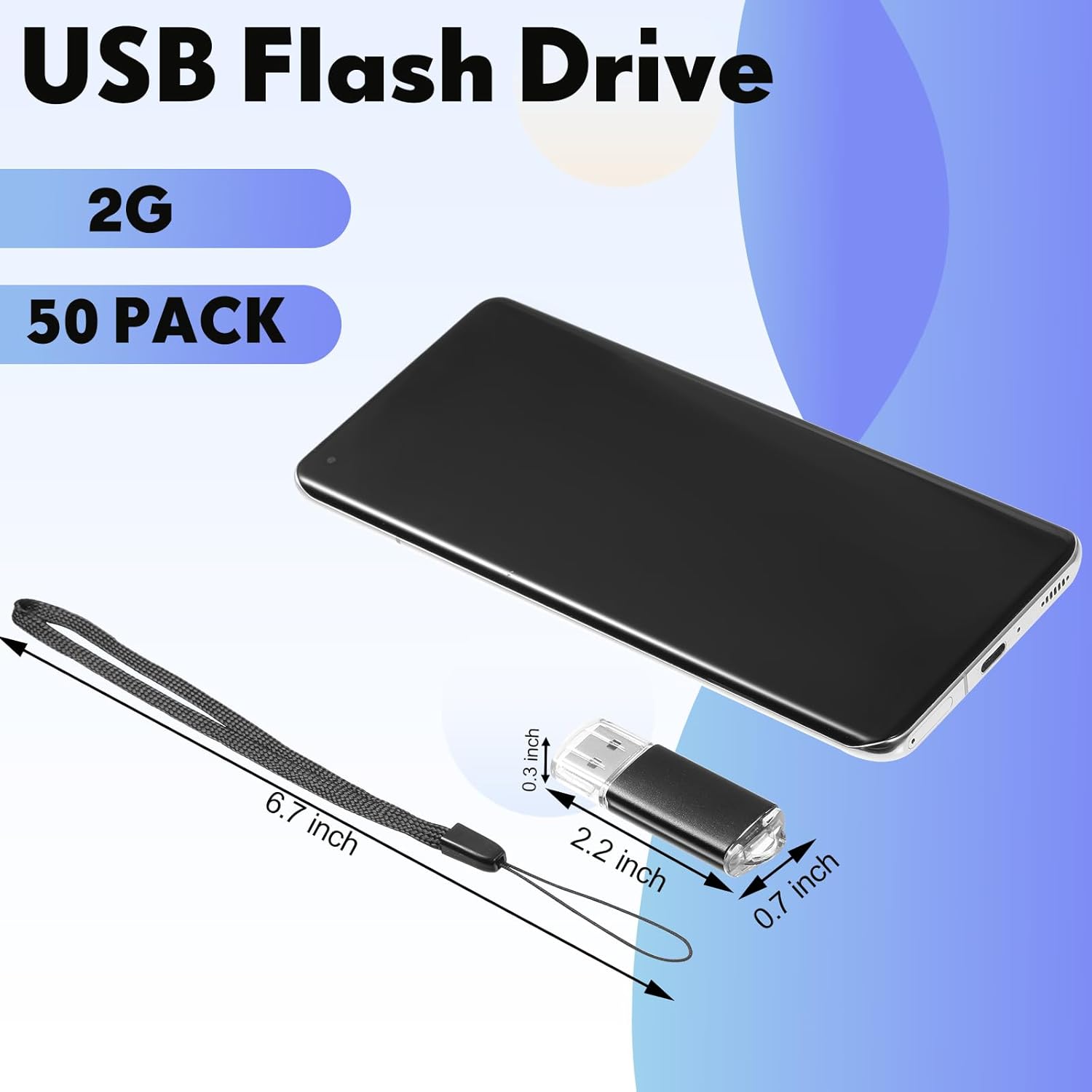 Drive Flash in bulk: You will get 50 pieces of USB 2.0 Flash units of 2 GB and 50 cords, to meet your daily storage needs and transfer of music/video/photos/files/compressed packages; Small and light body, easy to transport and use