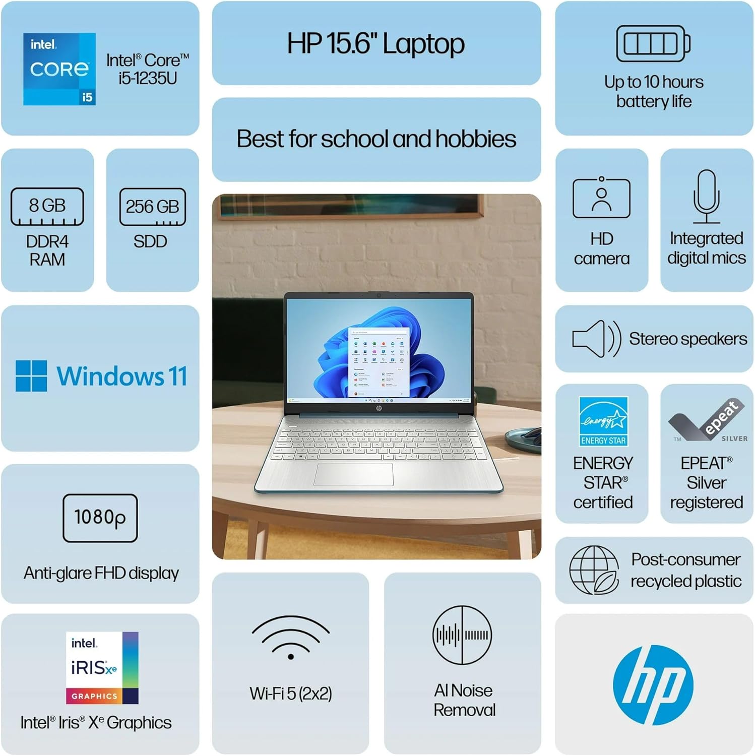 【15.6″ FHD Anti-Glare Micro-Edge Display】 15.6-inch diagonal FHD BrightView micro-edge display. 1920 x 1080 resolution delivers stunning color and clarity. IPS technology for wide viewing angles.
