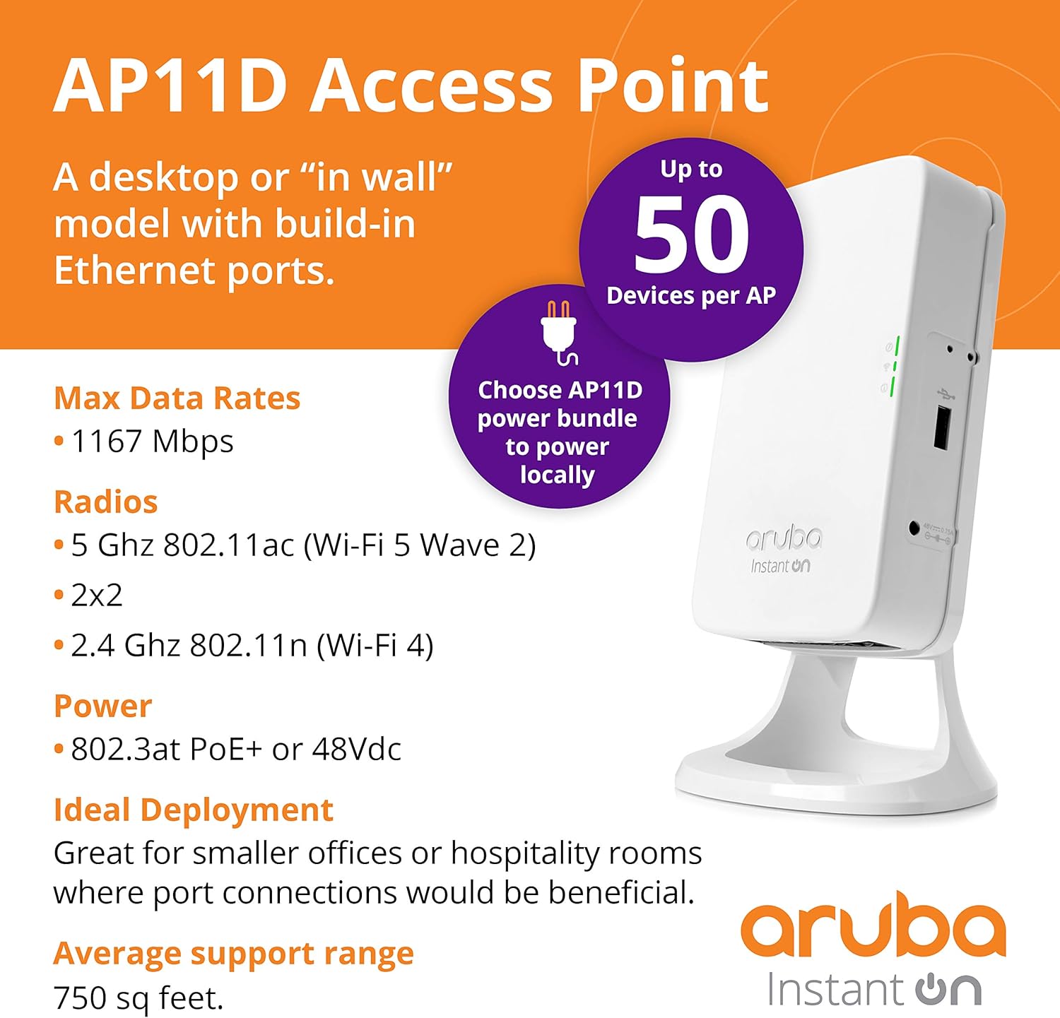 HPE Networking Instant On Access Point AP11D 2×2 WiFi 5 Indo…