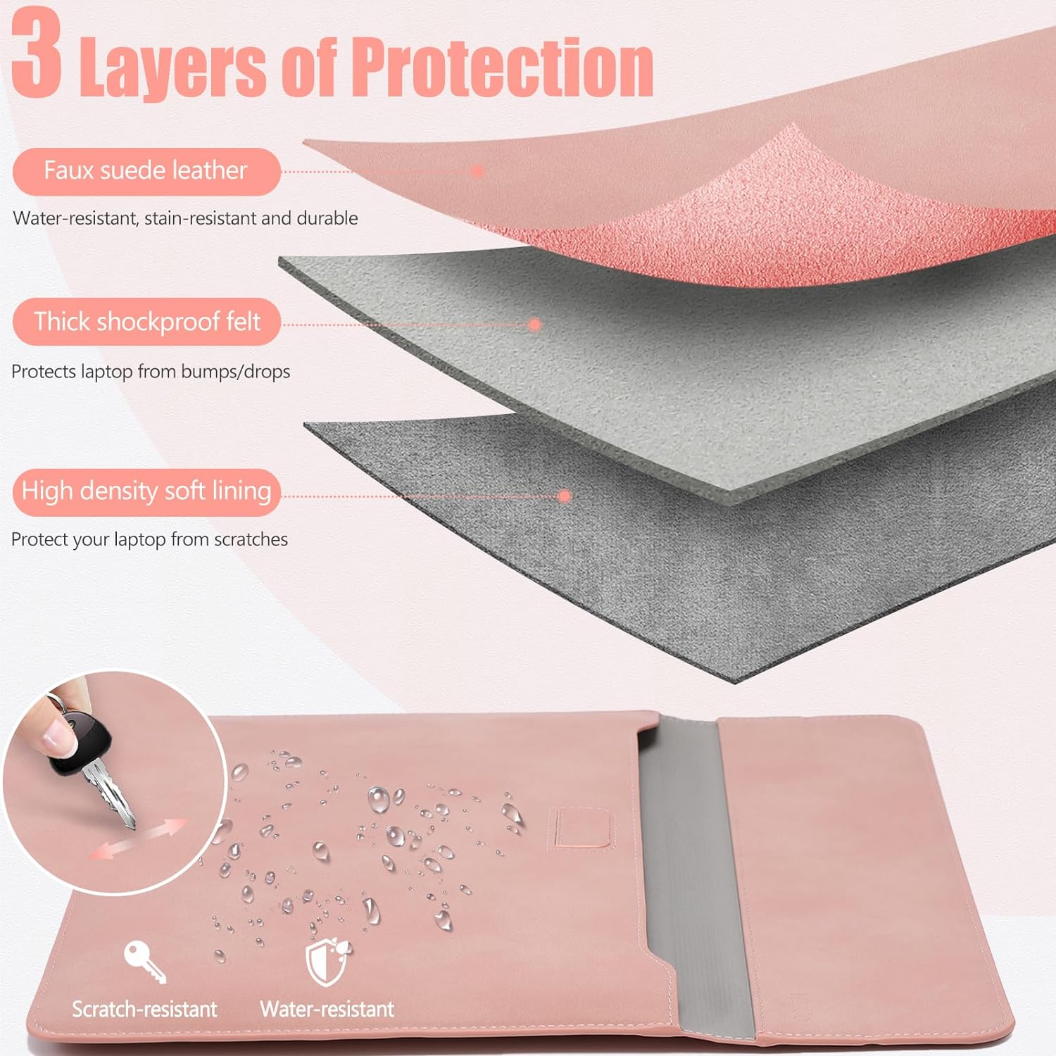 Excellent Quality and Slim Design: Made of PU leather material, waterproof, shockproof and anti-scratch; The slim design allows the case to easily slide into your backpack, perfect for everyday use or travel.