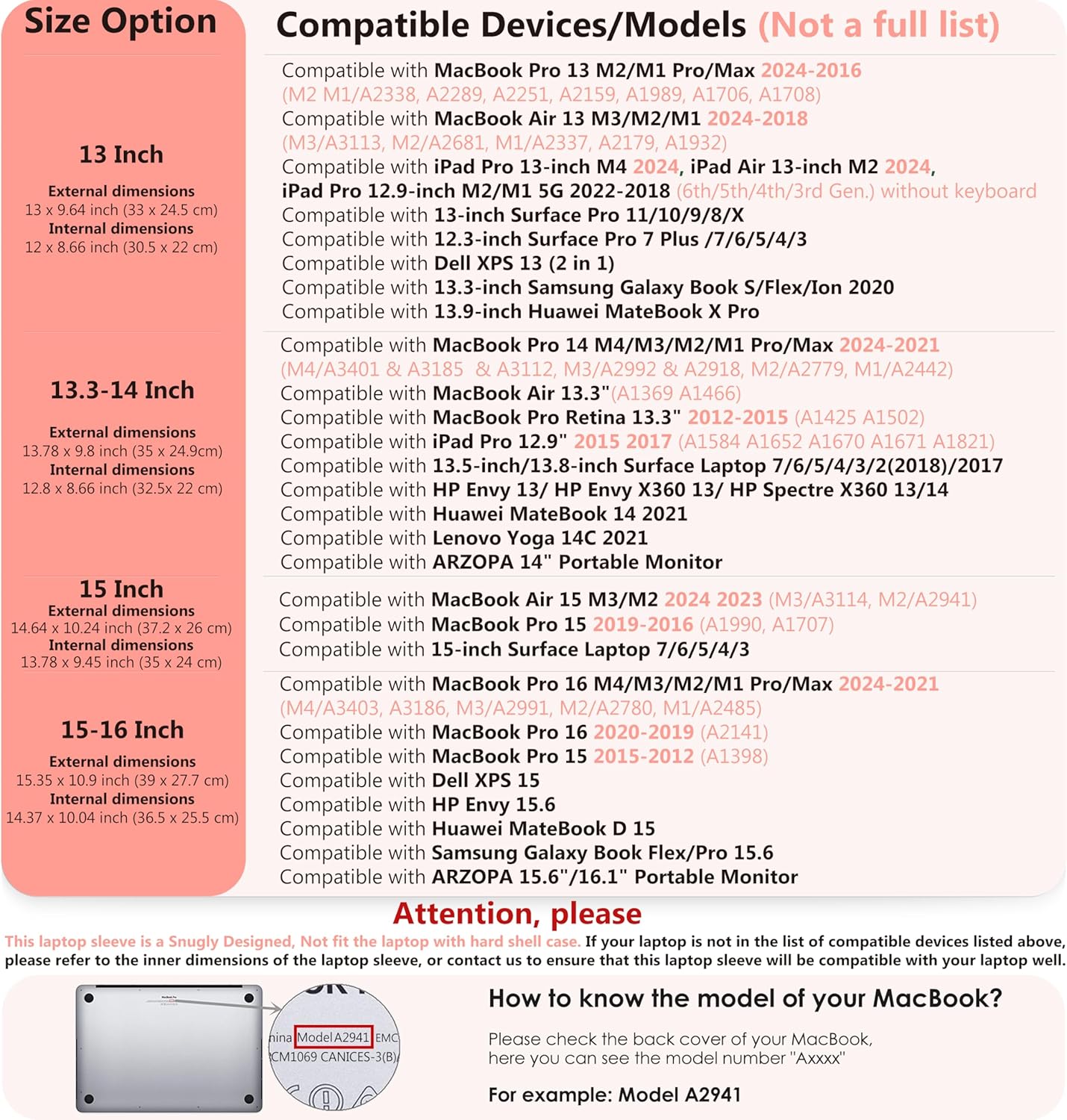 、Compatible with MacBook Pro 13 2016-2024(M2/A2686, M1/A2338, A2289, A2251, A2159, A1989, A1706, A1708), MacBook Air 13/13.6 2024-2018 (M3/A3113, M2/A2681, M1/ A2337, A2179, A1932), Dell XPS 13, Surface Pro 11/10/9/X/8 13″, Surface Pro 7+/7/6/5 12.3″, Surface Laptop Go 12.4″ , iPad Pro 13-inch M4 2024, iPad Air 13-inch M2 2024, iPad Pro 12.9″ M2/M1 5G 2022-2018 (6th/5th/4th/3rd generation) without keyboard, Huawei MateBook X Pro 13.9″, Huawei MateBook 13s 13″, Samsung Galaxy Book S/Flex/Ion 2020 13.3″, etc.