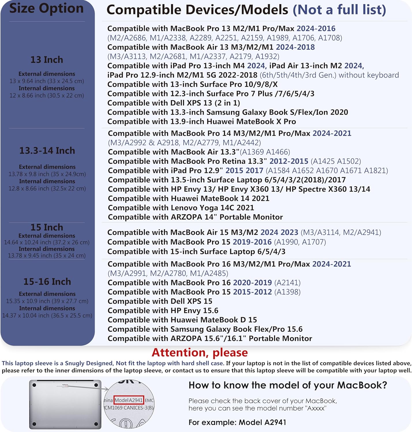 、Compatible with MacBook Pro 13 2016-2024 (M2/A2686, M1/A2338, A2289, A2251, A2159, A1989, A1706, A1708), MacBook Air 13/13.6 2024-2018 (M3/A3113, M2/A2681, M1/ A2337, A2179, A1932), Dell XPS 13, Surface Pro 11/10/9/X/8 13″, Surface Pro 7+/7/6/5 12.3″, Surface Laptop Go 12.4″ , iPad Pro 13-inch M4 2024, iPad Air 13-inch M2 2024, iPad Pro 12.9″ M2/M1 5G 2022-2018 (6th/5th/4th/3rd Gen) without keyboard, Huawei MateBook X Pro 13.9″, Huawei MateBook 13s 13″, Samsung Galaxy Book S/Flex/Ion 2020 13.3″, etc.