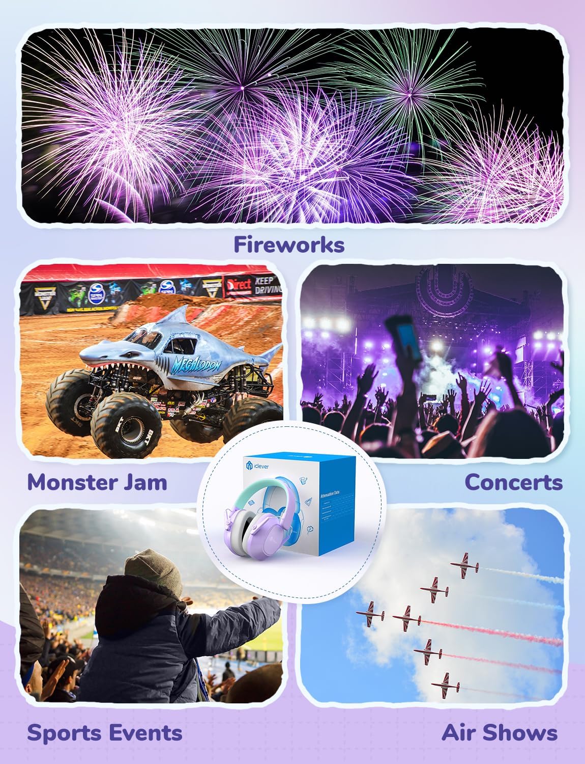 【Portable and applicable multi-descendar】 These ear hoses that cancel the noise can be folded for compact storage and easy transport, which allows them to take them to any noisy scene, as shows of monstrous trucks, sporting events, fireworks, concerts and more.