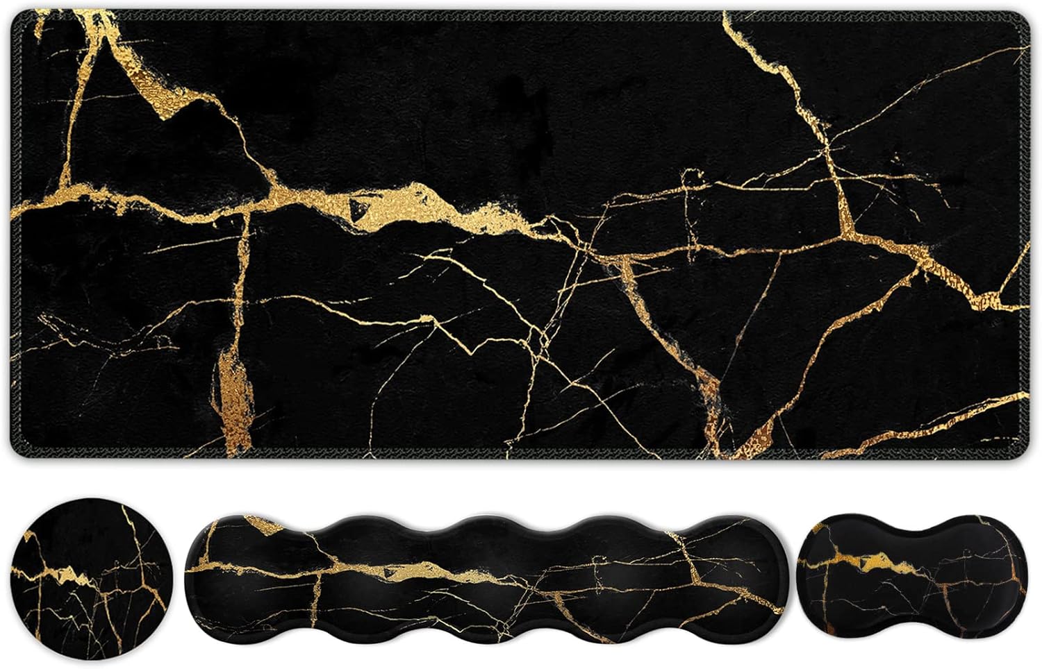 Ideal Desk Pad: Includes 1 x Large Mouse Pad, 1 x Keyboard Wrist Rest Pad, 1 x Mouse Pad Wrist Support, 1 x Coaster. Designed with vibrant printing pattern, wavy shape and modern style with classic and elegant elements, our computer mouse pad set protects your desktop.