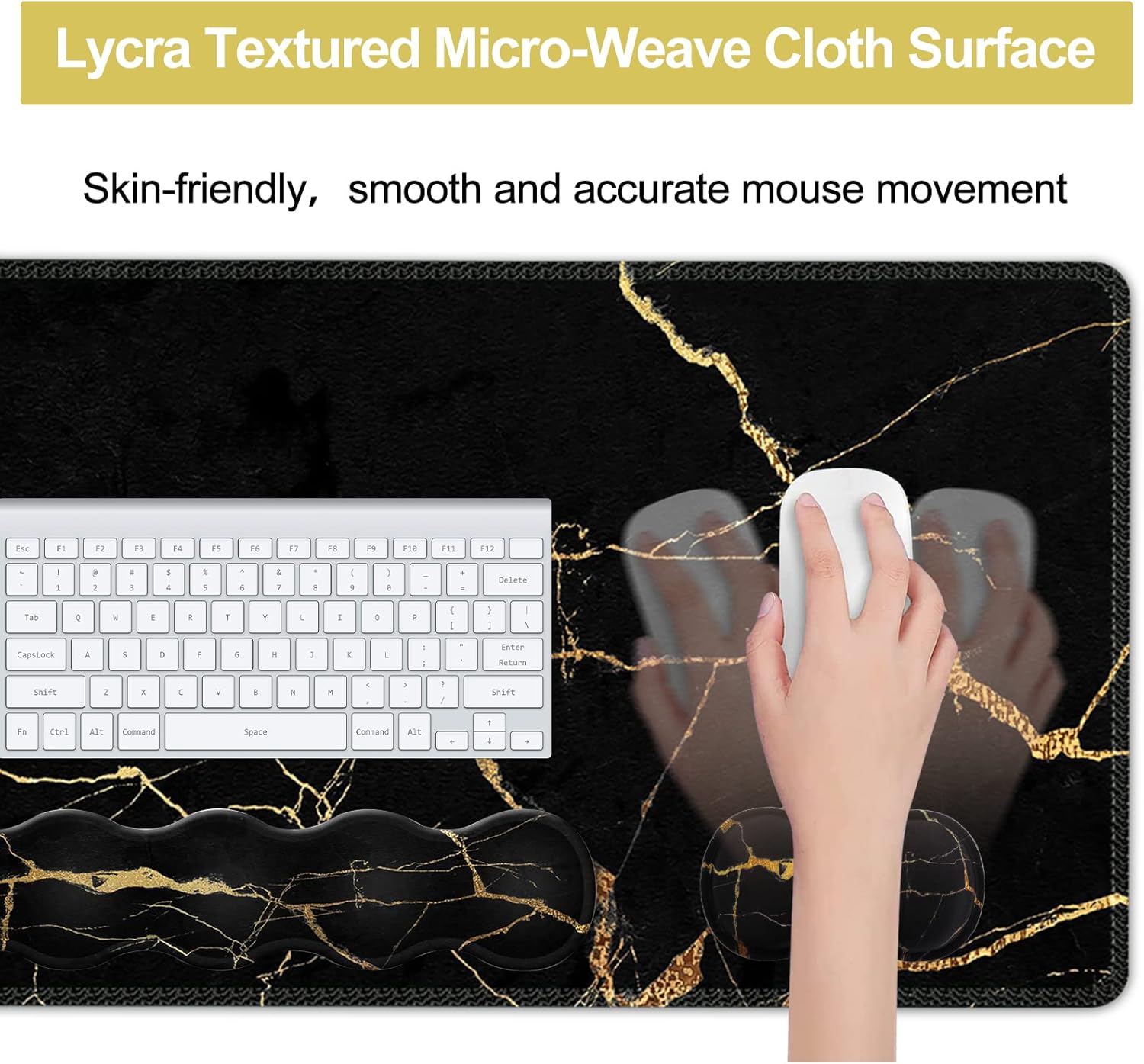 Premium Material and Smooth Surface: Keyboard wrist pad and mouse wrist cushion, filled with slow rebound memory foam, provide ergonomic support to your hands and wrists. The soft Lycra fabric allows you to move with ease and provides precise mouse control and operation.