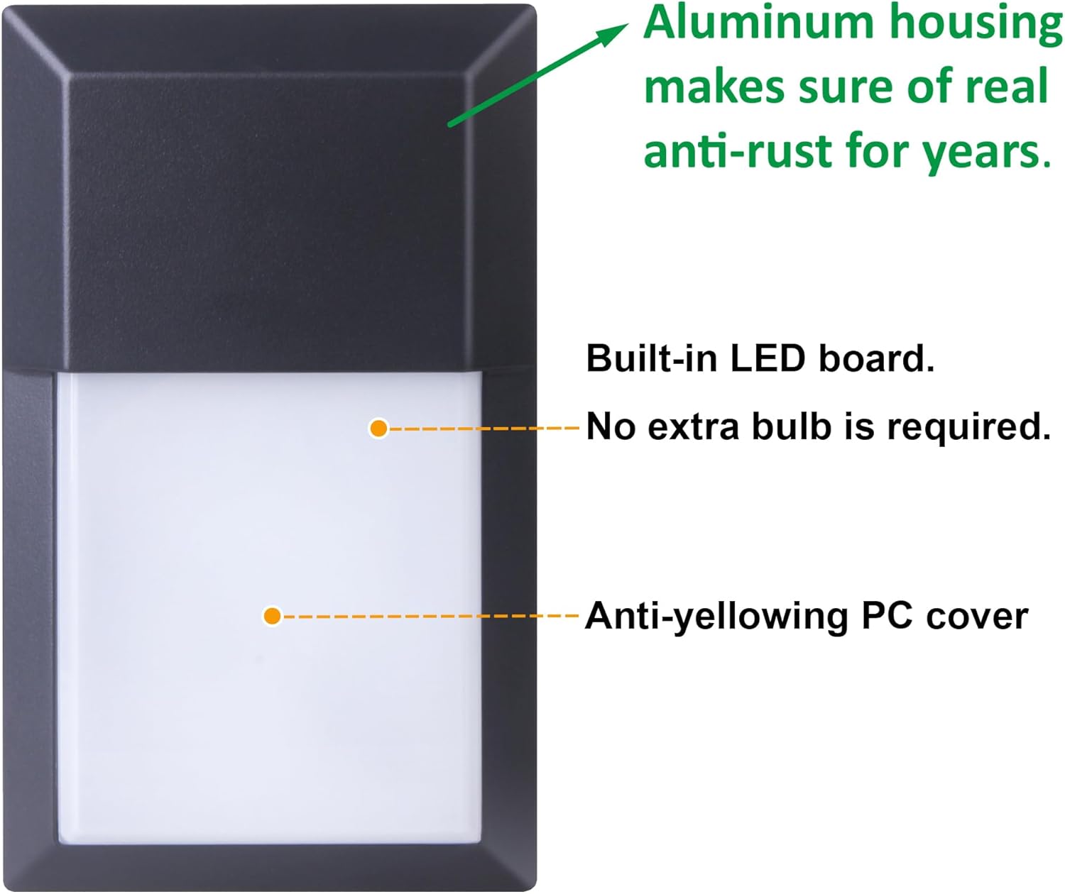 【Durable use】: Designed for long -term durability and use, our outdoor wall flashlight is impermeable IP65, ensuring its excellent performance even in bad weather. With a useful life of 50,000 hours and built from aluminum and oxide -proof PC, this outdoor appliques makes it an economic and sustainable option for outdoor lighting.