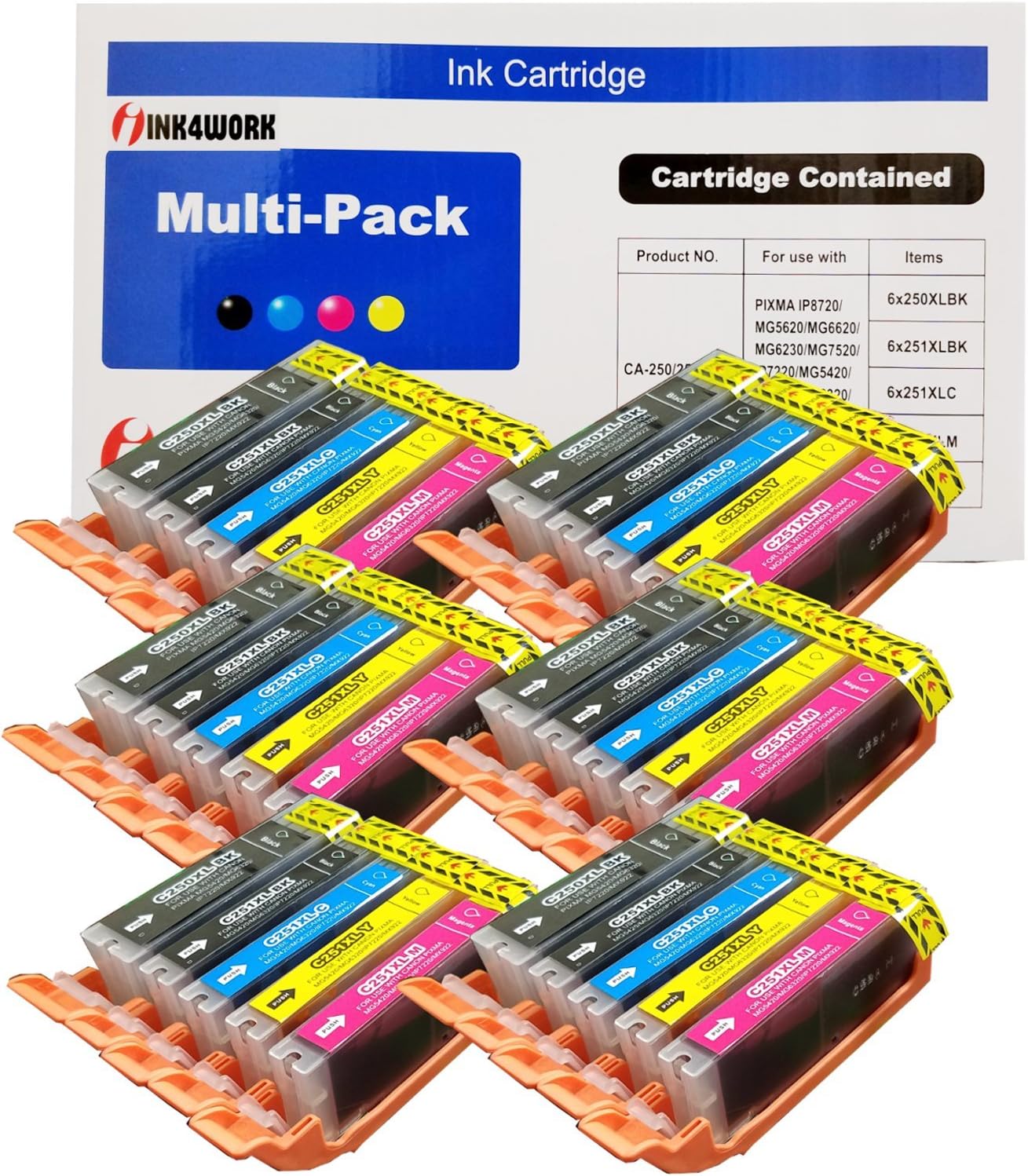 Ink cartridge compatible with ink4work 30 compatible pack [with Ink Level Chip] For PGI-2550xl PGI250 XL CLI-251XL CLI251 XL