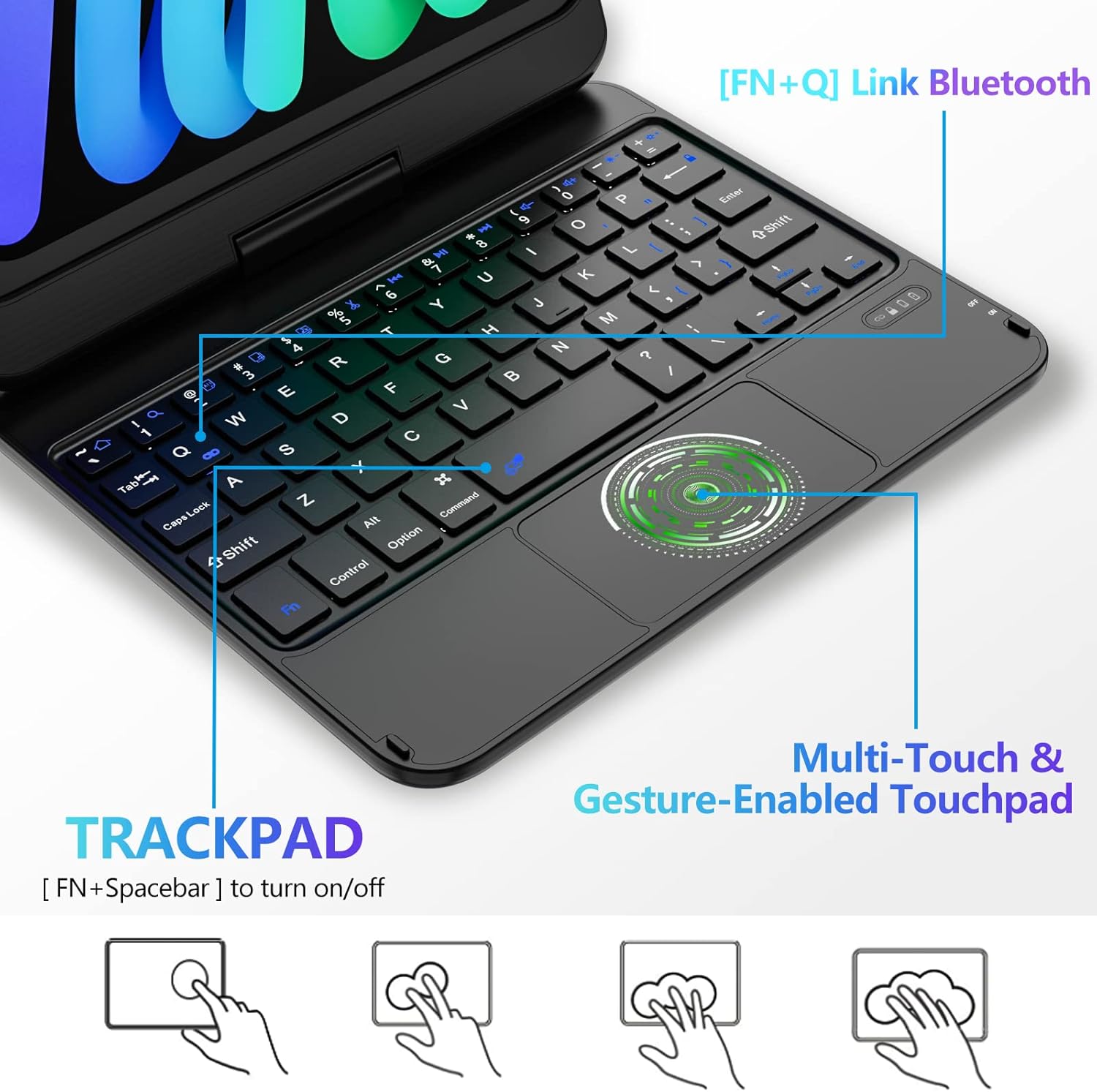 💻💻【Touch Keyboard for iPad Mini 6th Generation (2021)】 Built-in multi-touch trackpad with abundant trackpad gestures, you can turn your tablet into a high-performance and easy-to-use laptop! Like swiping and scrolling to navigate iPad Mini 6th generation (8.3-inch, 2021 release) even faster, opening up new ways to work with your tablet. It offers a comfortable user experience and allows you to click and scroll through content effortlessly.