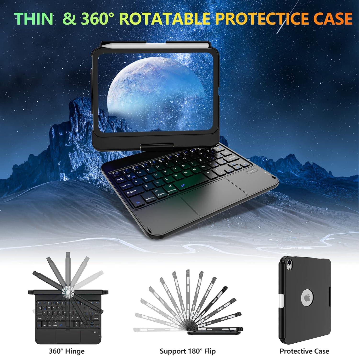 💻💻【View from Multiple Perspectives】-With a new and unique design, layered appearance and more convenient to use, 360 swivel and 180 flip case, your tablet screen will have multiple viewing angles. You can show your work presentation, watch your favorite show, or read a new book. It is also a great help for your children to do their homework. There are no limits to places, you can take it on vacation, on your bed, on your table or in the kitchen.