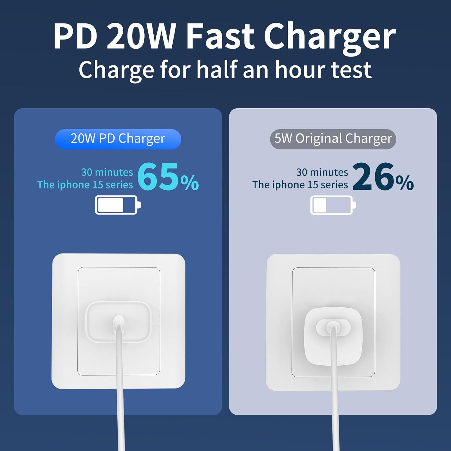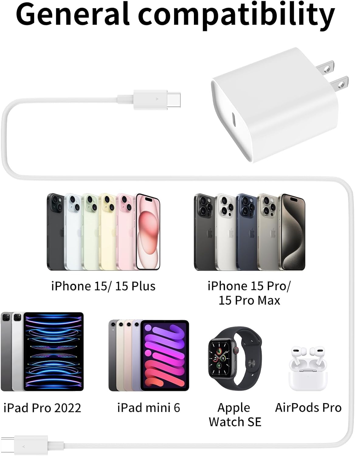 iPhone 15 Charger: 20W iPhone 15 fast charging brick with 6ft USB C to USB C charging cable enjoys a maximum output power of 20W, enabling fast charging for iPhone 15/iPad Pro/Air/Mini. Charge your iPhone 15 Pro Max fully in just 1 hour, charge your iPad Pro 12.9 fully in just 2.5 hours, which is 3 times faster than a 5W USB charger.